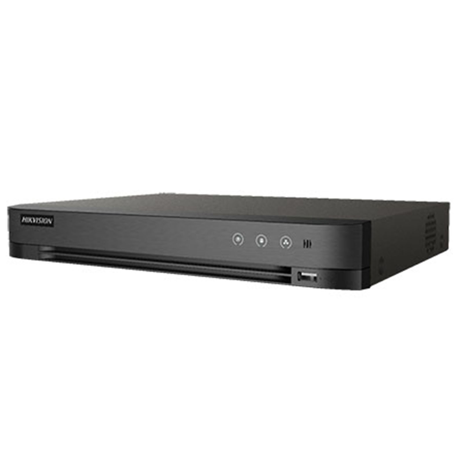 DVR Hybrid 8 CH self-adaptive HDTVI 3MP /AHD 2MP/HD CVI 2MP/IP/CVBS, accetta fino a 4 telecamera IP a 6MP, fino a 12 Canali. risoluzione analogica TVI fino a 3MP@15Fps, compressione video H.265+/H.265/H.264+/H.264, uscita video HDMI - VGA - CVBS, I/O audio 1/1, 1 RJ45 10M/100M, protocolli di rete TCP/IP, PPPoE, DHCP, Hik-Connect, DNS, DDNS, NTP, SADP, NFS, iSCSI, UPnP, HTTPS, ONVIF. Supporta controllo PTZ via Omnicat, sino a 128 connessioni simultanee, supporta accesso a Hik-Connect. 1 HDD sata fino a 10TB , 2 porte USB 2.0, 1 RS485 ,alimentazione 12VDC, temperatura di funzionamento -10 °C to +55 °C, assorbimento 7W. Dati Up to coax, Regole SMART:Intrusion detection, line crossing detection, VQD. Playback sincronizzato 8ch. Canale audio remoto 1ch.