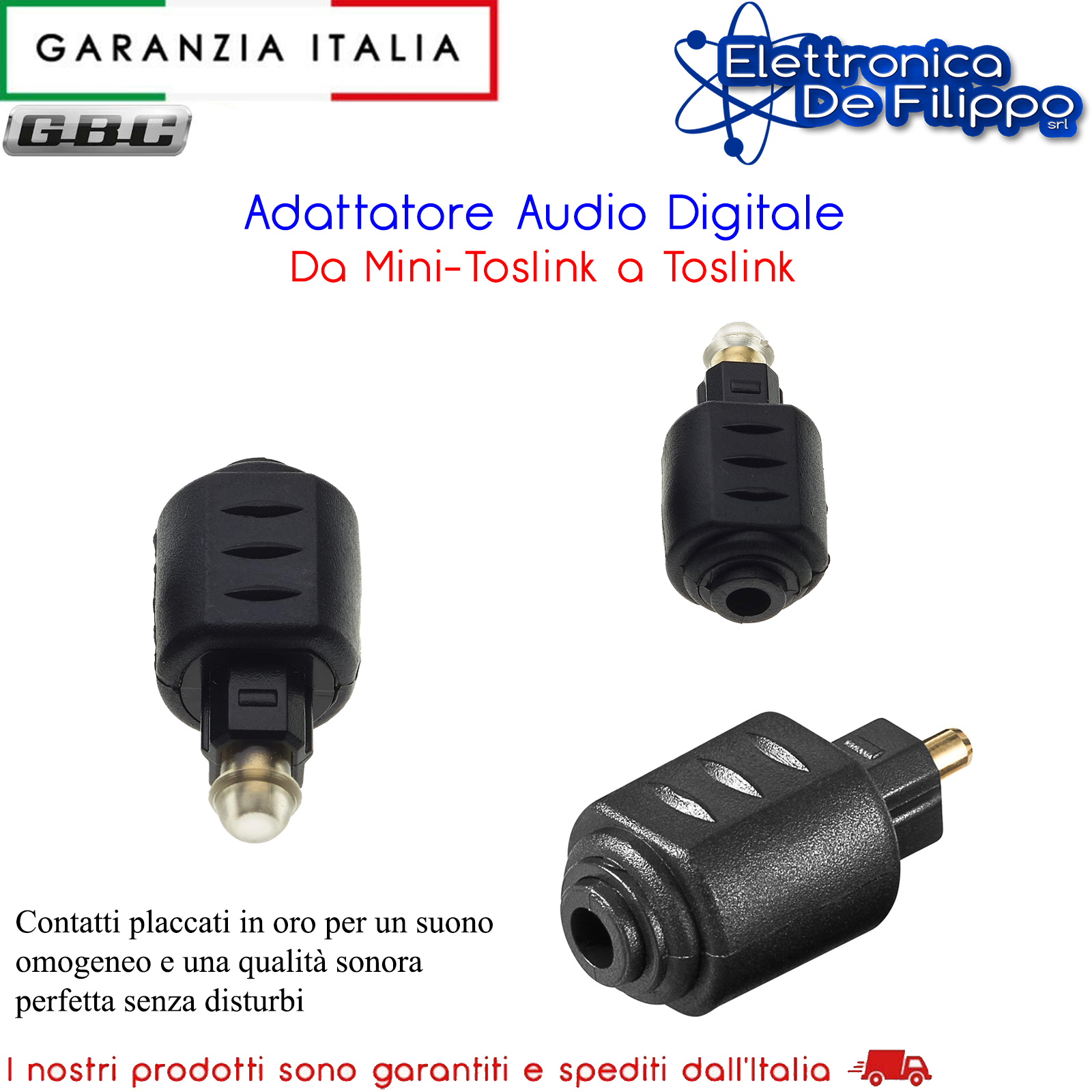L'Adattatore Toslink digitale ottico aumenta la qualità del suono abbattendo significativamente il jitter del segnale e la distorsione ottica con l'adattatore ottico Toslink Jack a mini plug che presenta una fibra ottica con indice graduato. Utilizzato per il collegamento di dispositivi con interfaccia TosLink come amplificatori, lettori Blu-ray, Smart TV, altoparlanti ecc. Elimina complicazioni associate al rumore di messa a terra elettrica per garantire una chiarezza audio superiore utilizzando il Toslink al mini adattatore ottico. Prodotto di alta qualità!
