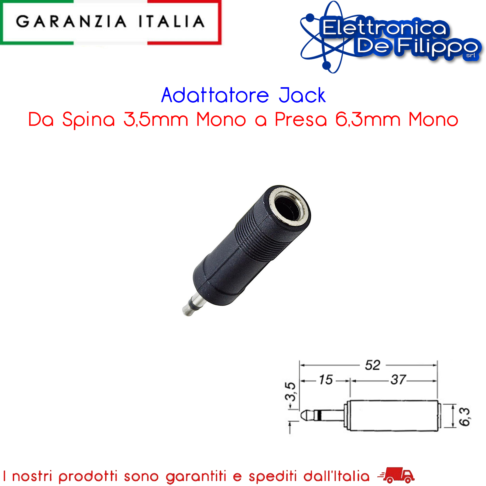 Adattatore Jack Da Spina 3,5mm Mono a Presa 6,3mm Mono