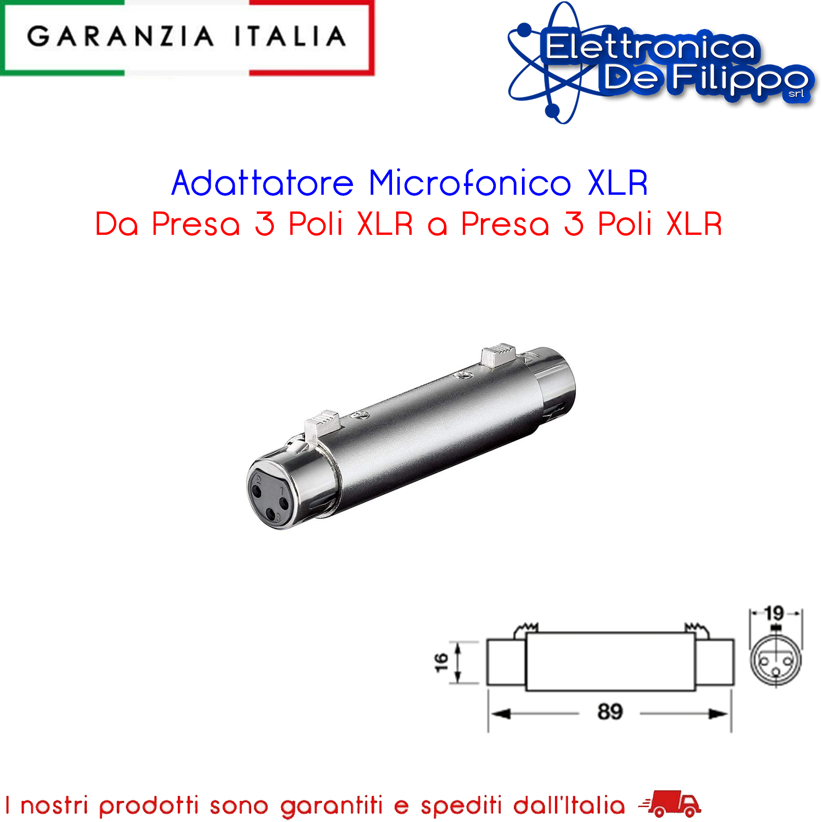Adattatore Microfonico XLR Da Presa 3 Poli XLR a Presa 3 Poli XLR