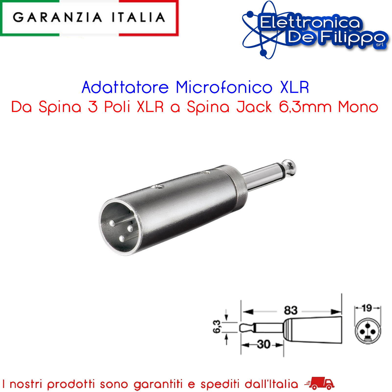 Adattatore Microfonico XLR Da Spina 3 Poli XLR a Spina Jack 6,3mm Mono