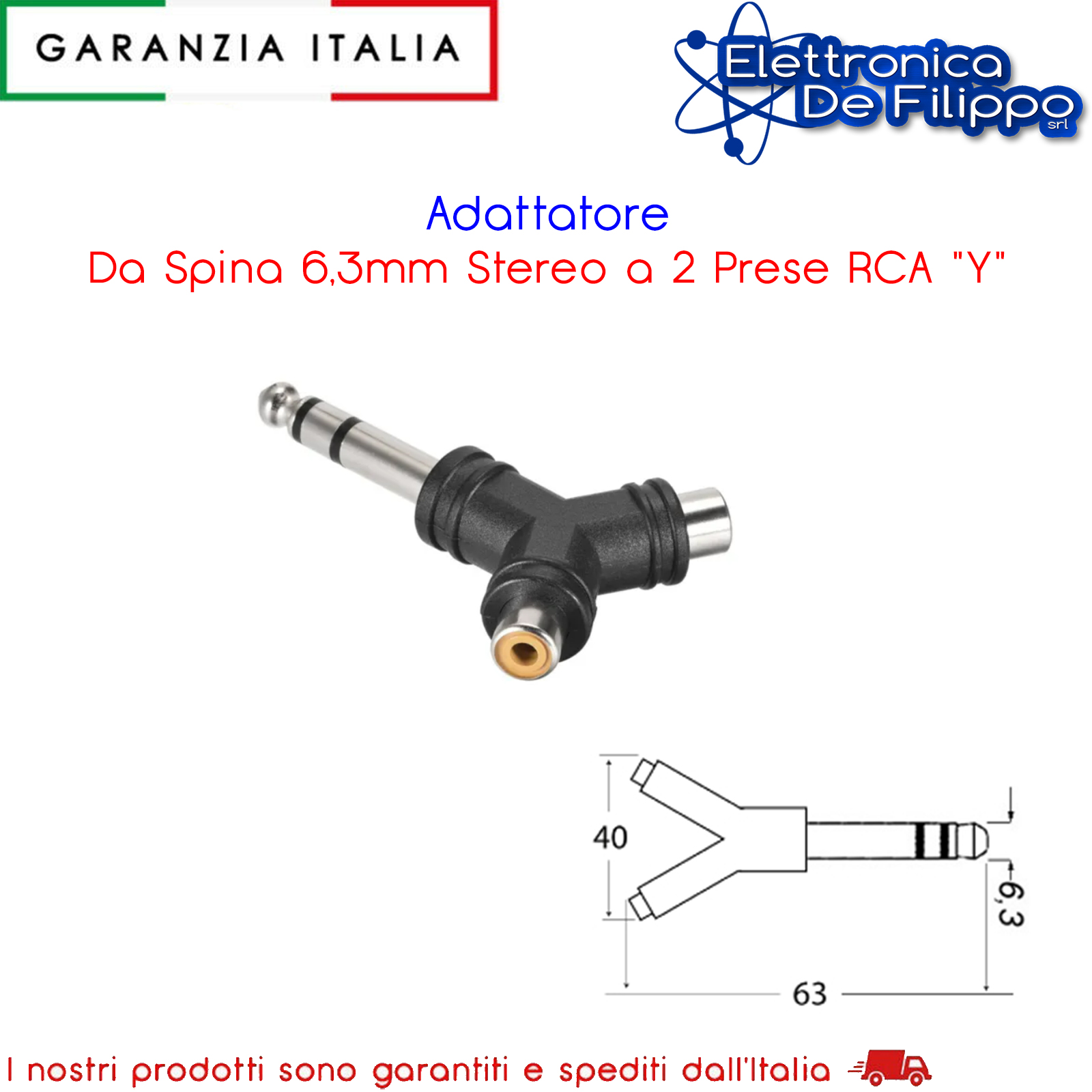 Adattatore Y Da Spina 6,3mm Stereo a 2 Prese RCA