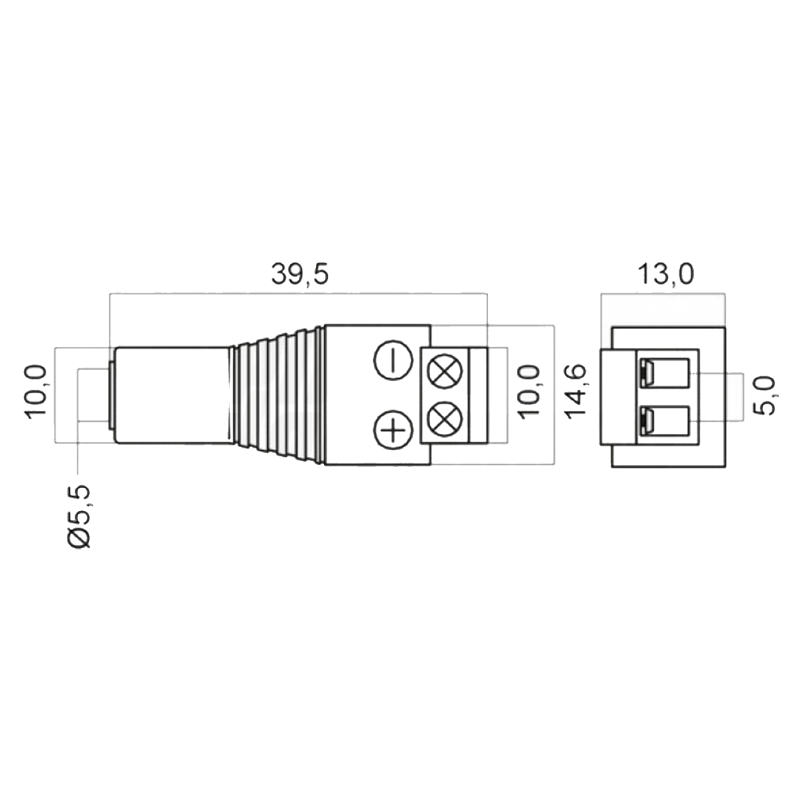 Adattatore Spina DC 5,5 x 2,1 a Morsetti
