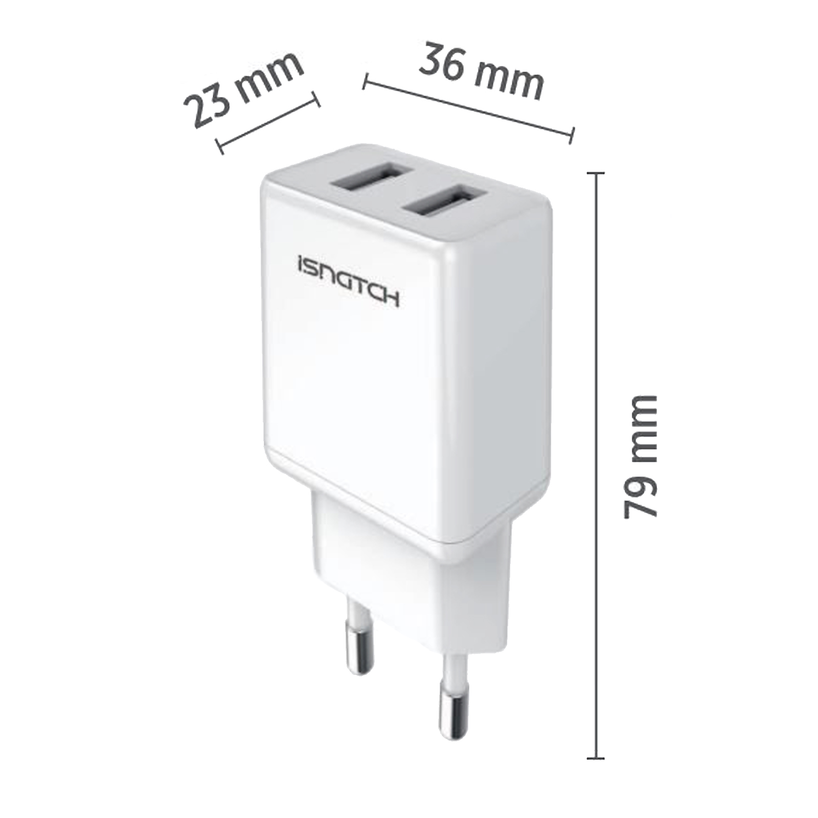 Alimentatore 2 uscite USB per Smartphone, iPhone, iPad, Tablet ed altri dispositivi USB. Corrente in uscita max totale e su singola porta 2,4A, potenza max 12W; usando entrambe le porte contemporaneamente corrente max su singola porta 1,2A. Circuito di protezione da sovraccarichi.