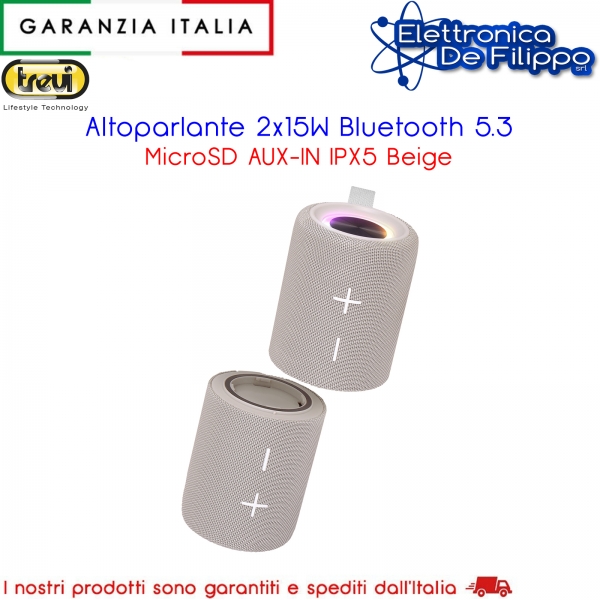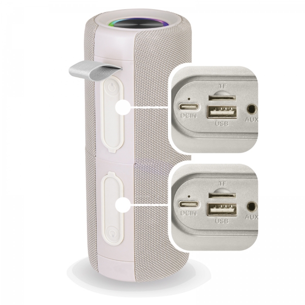 Altoparlante 2x15W Bluetooth 5.3 MicroSD AUX-IN IPX5 Beige
