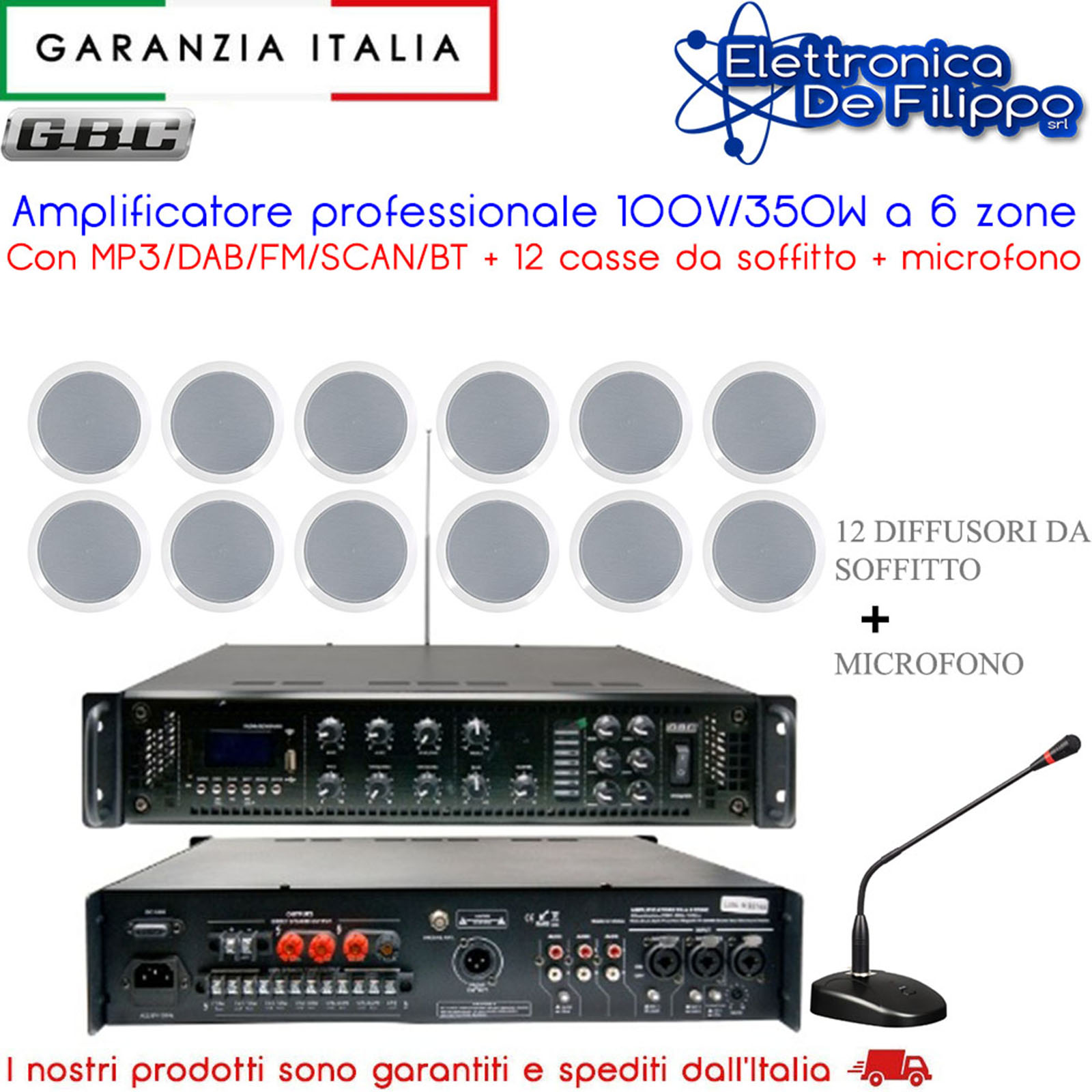 - Uscita: 100V, 70V, 4~16 Ohm.