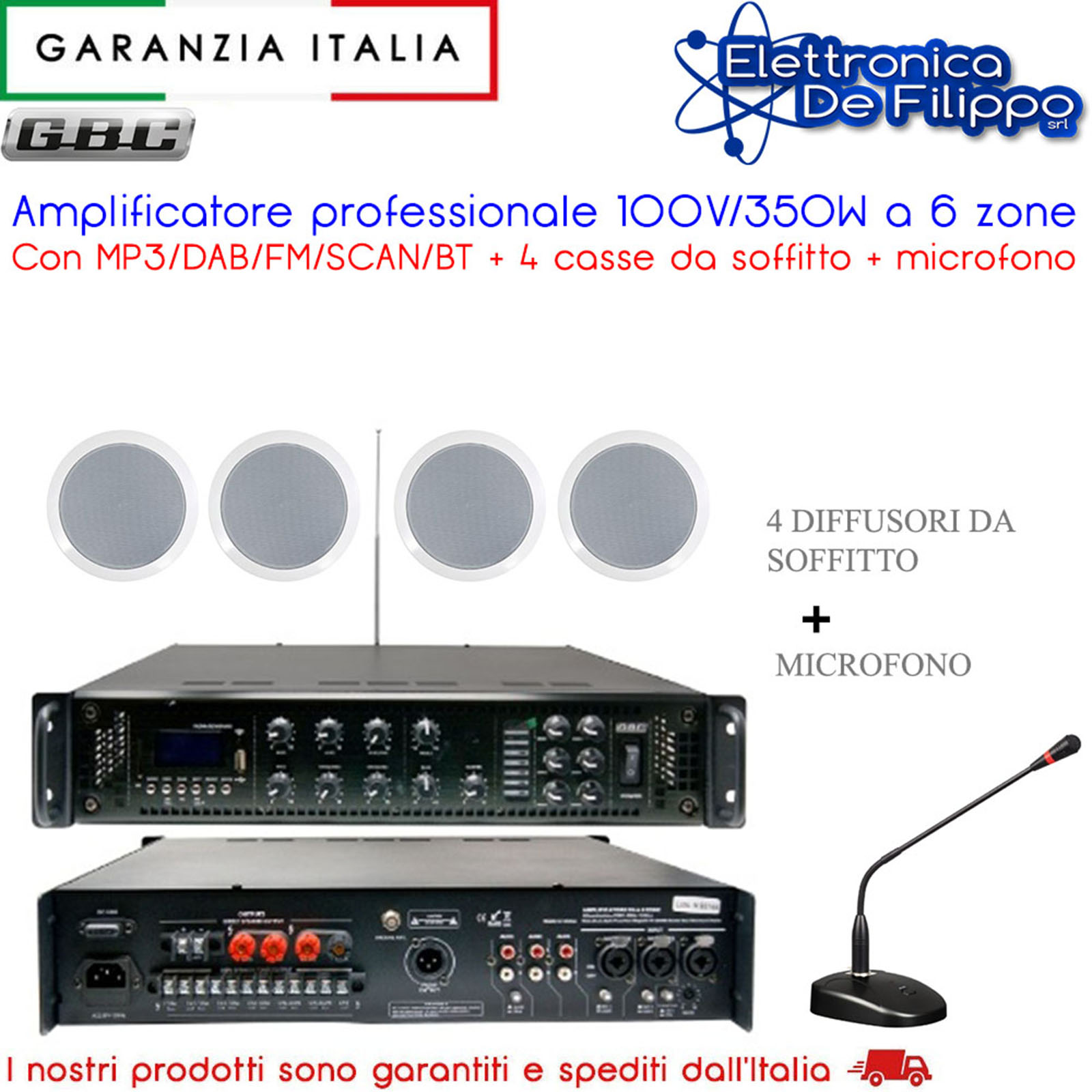 - Uscita: 100V, 70V, 4~16 Ohm.