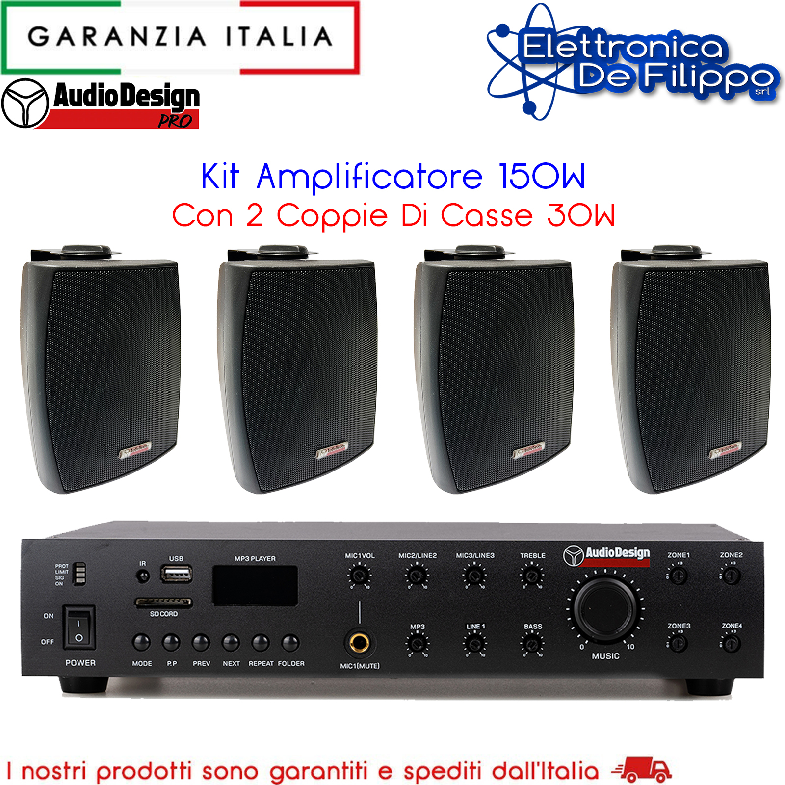 Kit Amplificatore 250W Con 2 Coppie Di Casse 30W