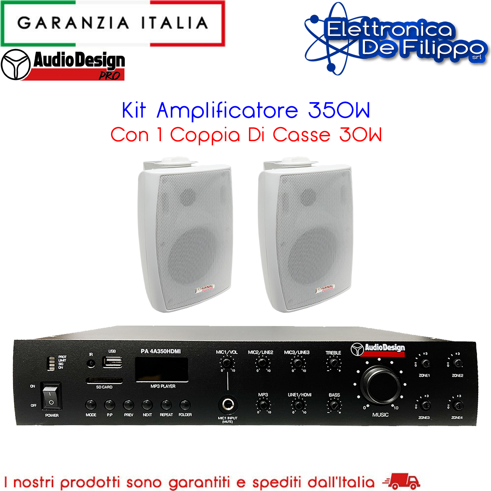 Kit Amplificatore 350W Con 1 Coppia Di Casse 30W