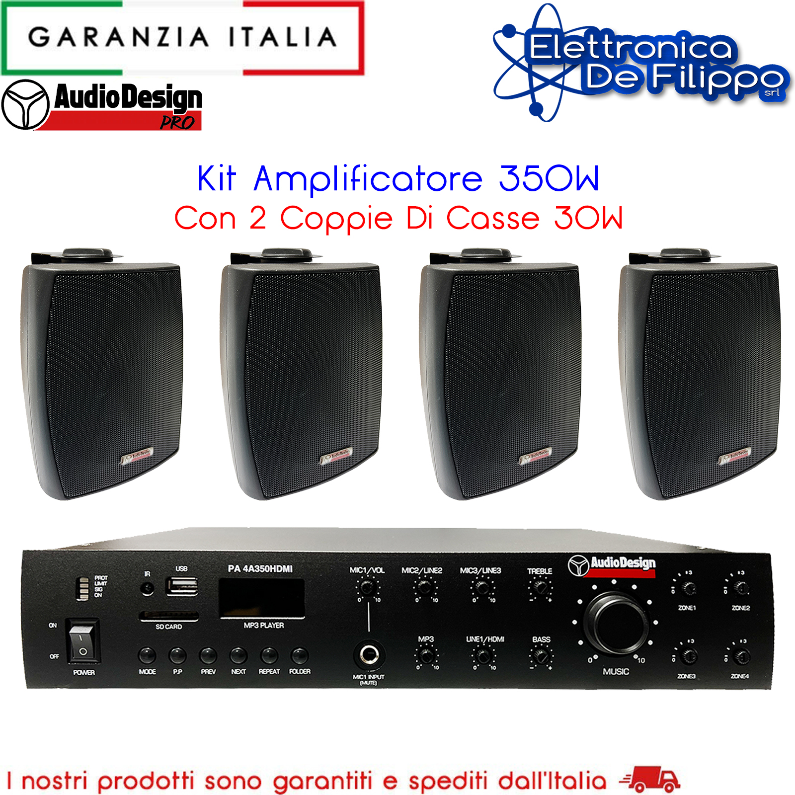 Kit Amplificatore 350W Con 2 Coppie Di Casse 30W