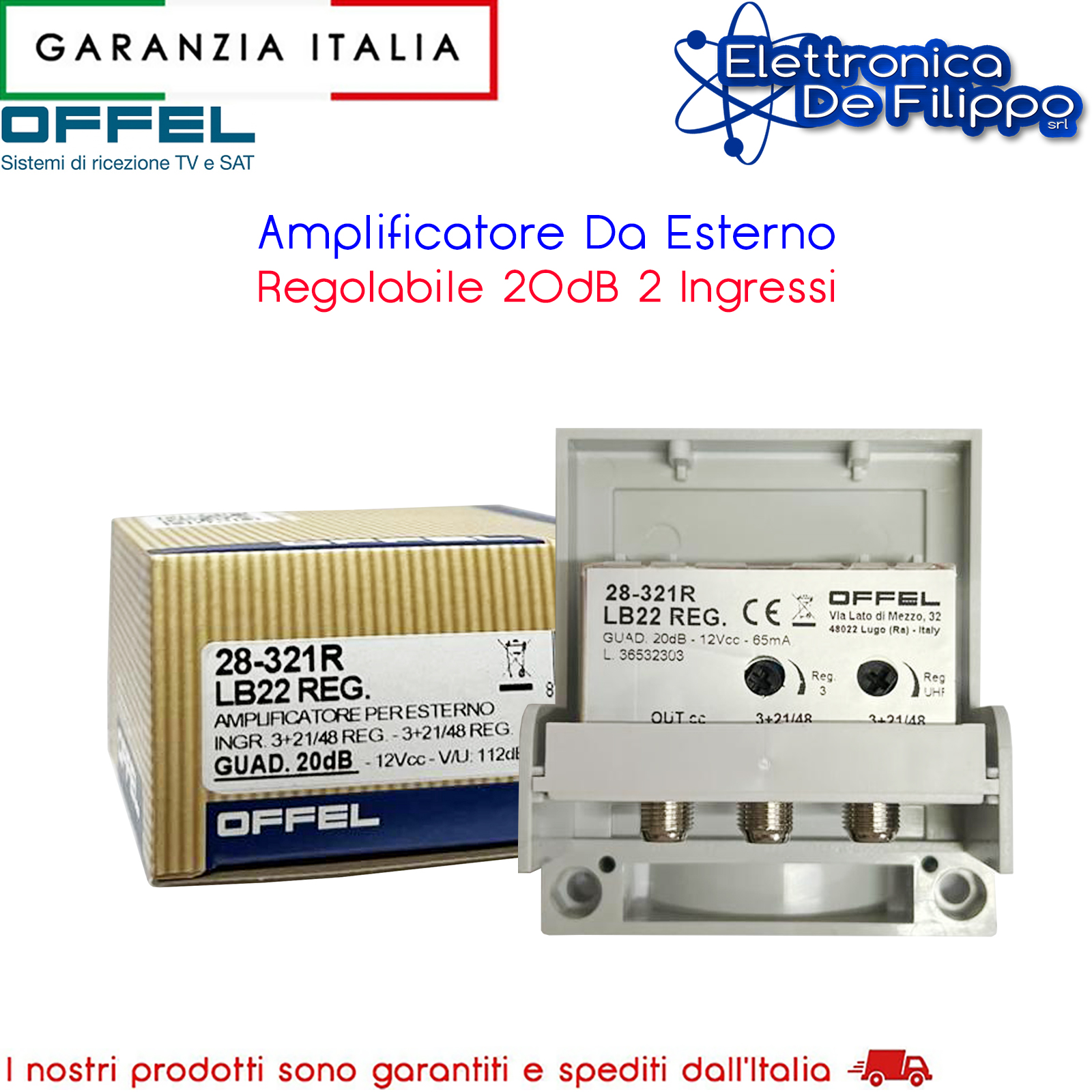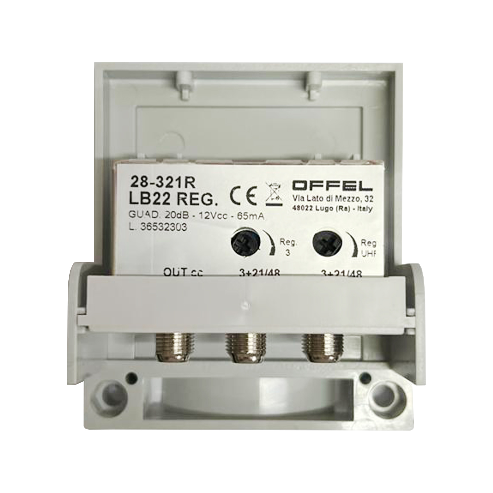 Amplificatore da palo 2 ingressi Log VHF+UHF 1 uscita 20dB regolabile Amplificatore larga banda per esterno, utilizzato in impianti singoli o piccoli impianti di ricezione Progettato per ottimizzare l'amplificazione dei segnali DTT compresi nel range E05÷E48, attenuando la banda LTE 700 MHz senza precludere il buon funzionamento del canale E48 Dotato di due ingressi larga banda amplificati 3+UHF Ogni ingresso è dotato di trimmer resistivo (0÷15 dB) come regolatore di livello per la banda 3+UHF Realizzato in contenitore schermato dotato di connettori a vite tipo F L'amplificazione delle bande 3 e UHF è realizzata a linea unica