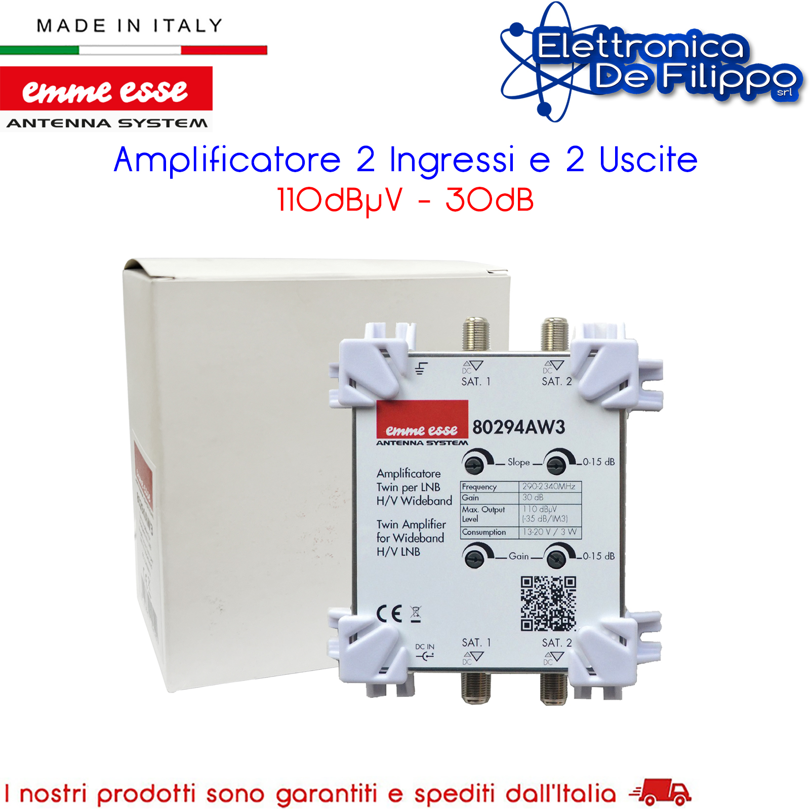 Amplificatori di linea a 2 vie per segnali sat con presa laterale per alimentatore esterno con un guadagno di 30dB regolabile indipendentemente per ogni polarità