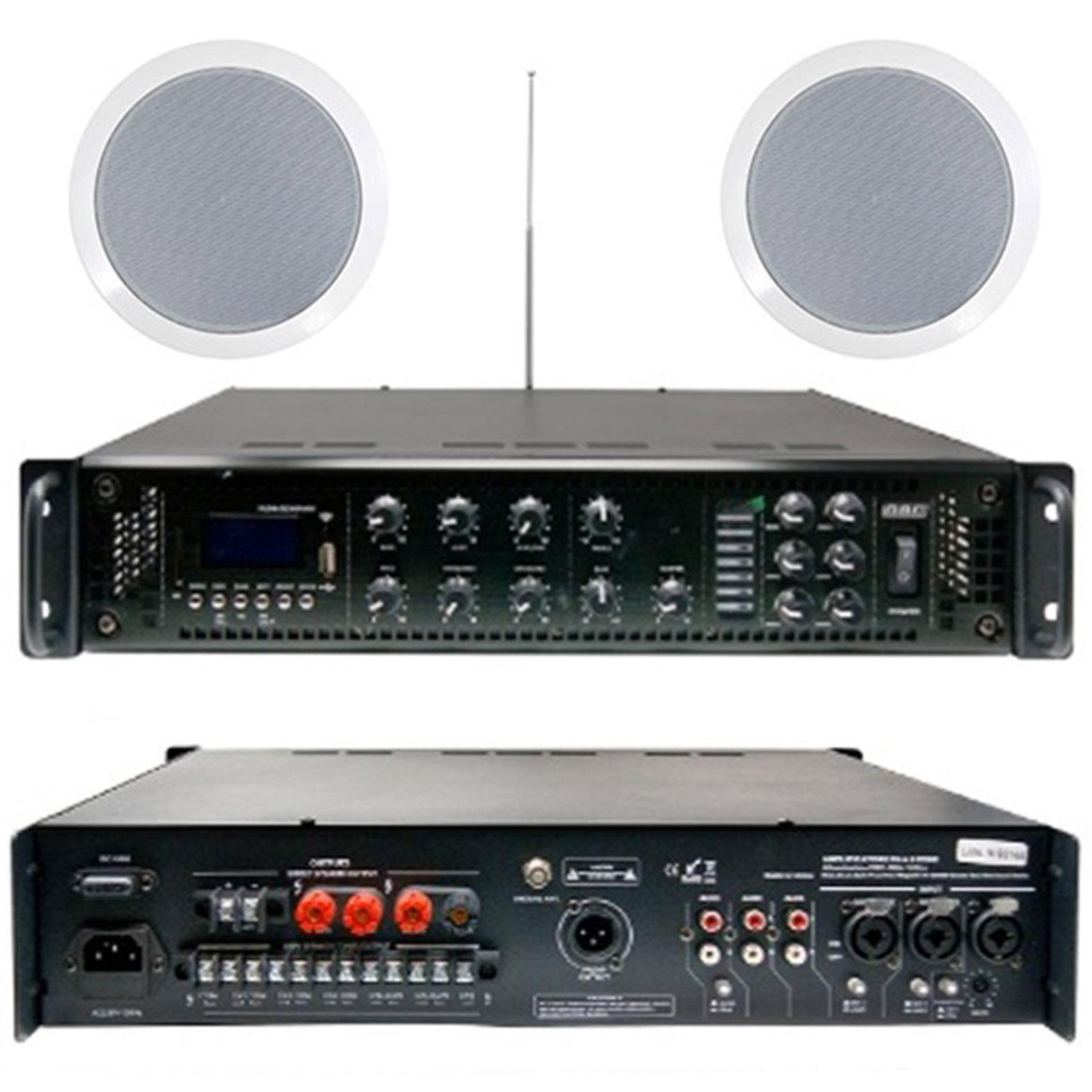 Amplificatore professionale 100V/350W a 6 zone MP3/DAB/FM/SCAN/BT con 2 casse