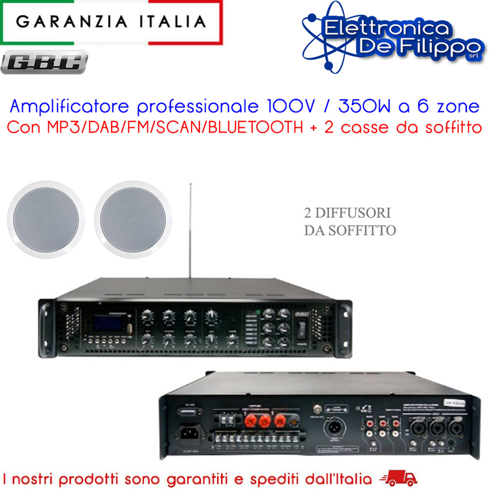 - Uscita: 100V, 70V, 4~16 Ohm.