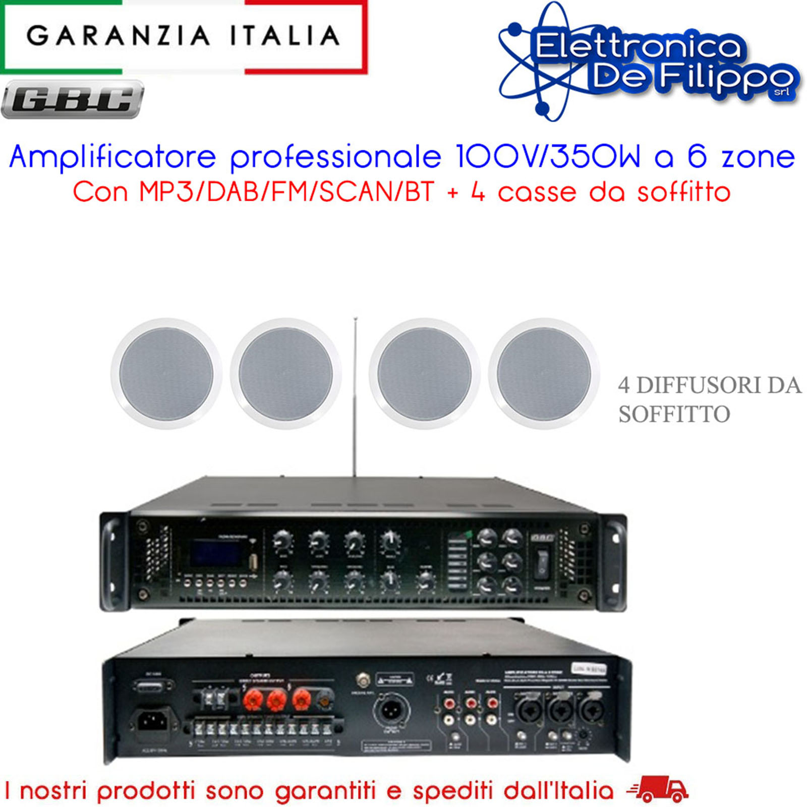 - Uscita: 100V, 70V, 4~16 Ohm.