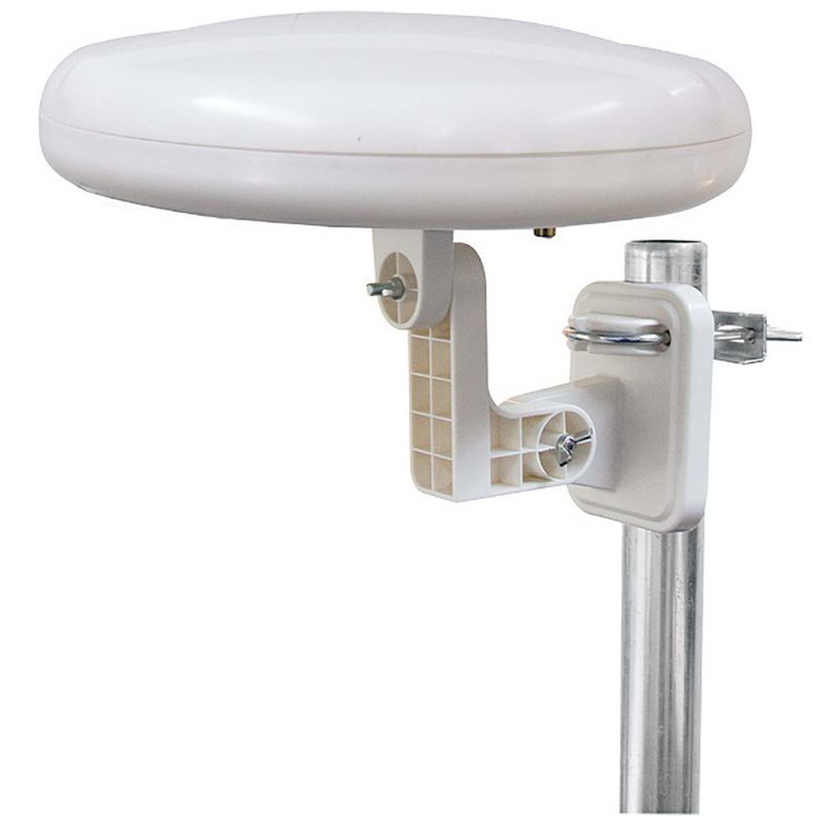 Antenna per uso esterno amplificata UHF/VHF,FM ed omnidirezionale. Scocca anti raggi UV e waterproof. Supporto per fissaggio a palo e balconi. Leggera, design compatto e facile da installare. Antenna con alto guadagno e con bassa figura di rumore. Grazie alla sua forma circolare consente un ottima ricezione del segnale in tutte le direzioni (a 360°).