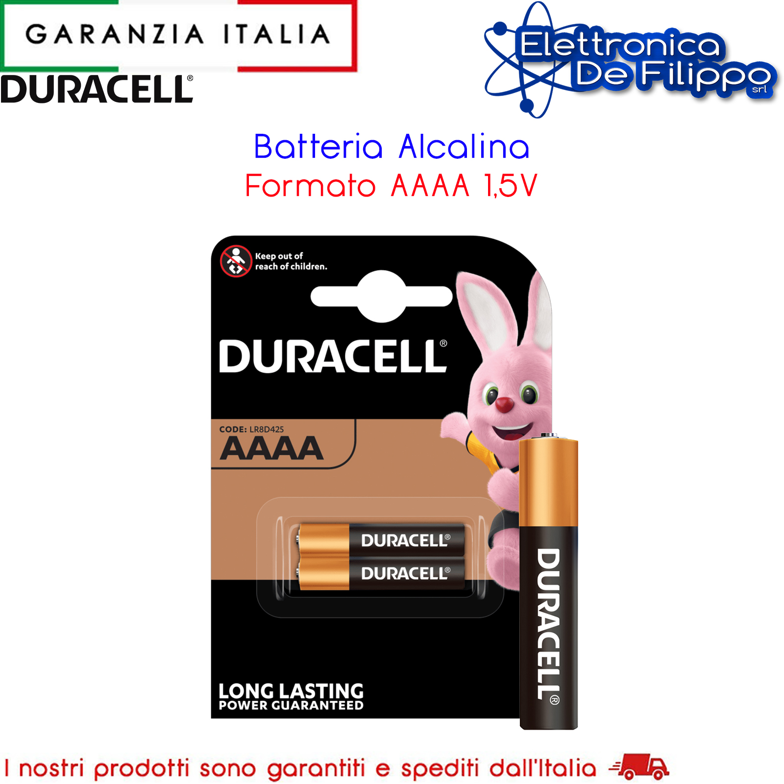 Batterie Duracell Specialistiche alcaline AAAA - energia a lunga durata, garantita Garanzia di durata fino a 5 anni se correttamente conservate nella confezione