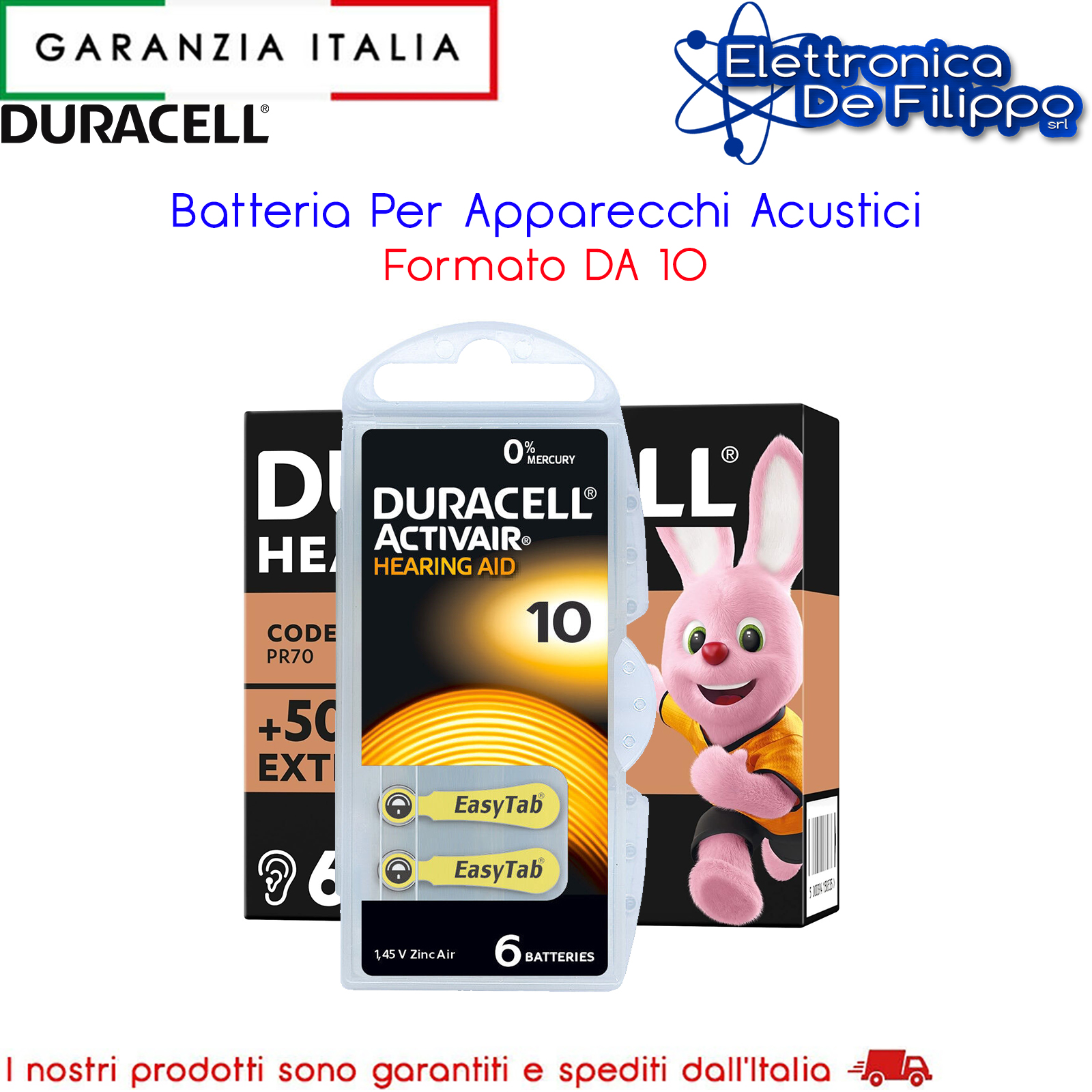 Senti ogni momento con l'energia di lunga durata con le batterie Specialistiche per Apparecchi Acustici Duracell, formato 10 con l'EasyTab. L'EasyTab è extra lungo, in modo da facilitare il maneggiamento e la sostituzione, e la sua confezione leggera è facile da aprire. Le batterie per Apparecchi Acustici Duracell con EasyTab sono a codice colore, permettendoti di trovare facilmente il formato adatto per te. Inoltre, le batterie per Apparecchi Acustici Duracell restano cariche fino a 4 anni nell'ambiente di stoccaggio.