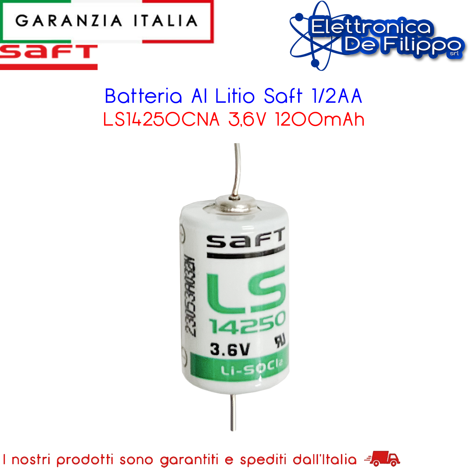 Pila al litio SAFT Cloruro di Tionile (LI-SoCl2). Questo tipo di pila al litio non ricaricabile da 3,6Volt, fa parte di una ampia gamma di pile prodotte da SAFT per i più disparati utilizzi. Le principali caratteristiche di questa tipologia di pile sono l'alto voltaggio durante la fase di scarica, la bassa autoscarica (3% anno a 20°C) e il suo funzionamento con temperatura da -60°C a 85°C. La tecnologia BOBINA (serie LS) si basa su un'alta concentrazione di energia che garantisce un prelievo continuo in scarica e/o impulsi di basso amperaggio. Conformi alla normativa IEC86-4 / EN50020. Certificato UL MH126009. Ermeticità garantita fino a 110°C.