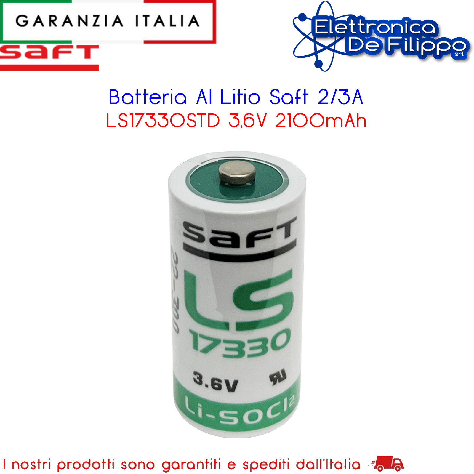 Pila al litio SAFT Cloruro di Tionile (LI-SoCl2). Questo tipo di pila al litio non ricaricabile da 3,6Volt, fa parte di una ampia gamma di pile prodotte da SAFT per i più disparati utilizzi. Le principali caratteristiche di questa tipologia di pile sono l'alto voltaggio durante la fase di scarica, la bassa autoscarica (3% anno a 20°C) e il suo funzionamento con temperatura da -60°C a 85°C. La tecnologia BOBINA (serie LS) si basa su un'alta concentrazione di energia che garantisce un prelievo continuo in scarica e/o impulsi di basso amperaggio. Conformi alla normativa IEC86-4 / EN50020. Certificato UL MH126009. Ermeticità garantita fino a 110°C.