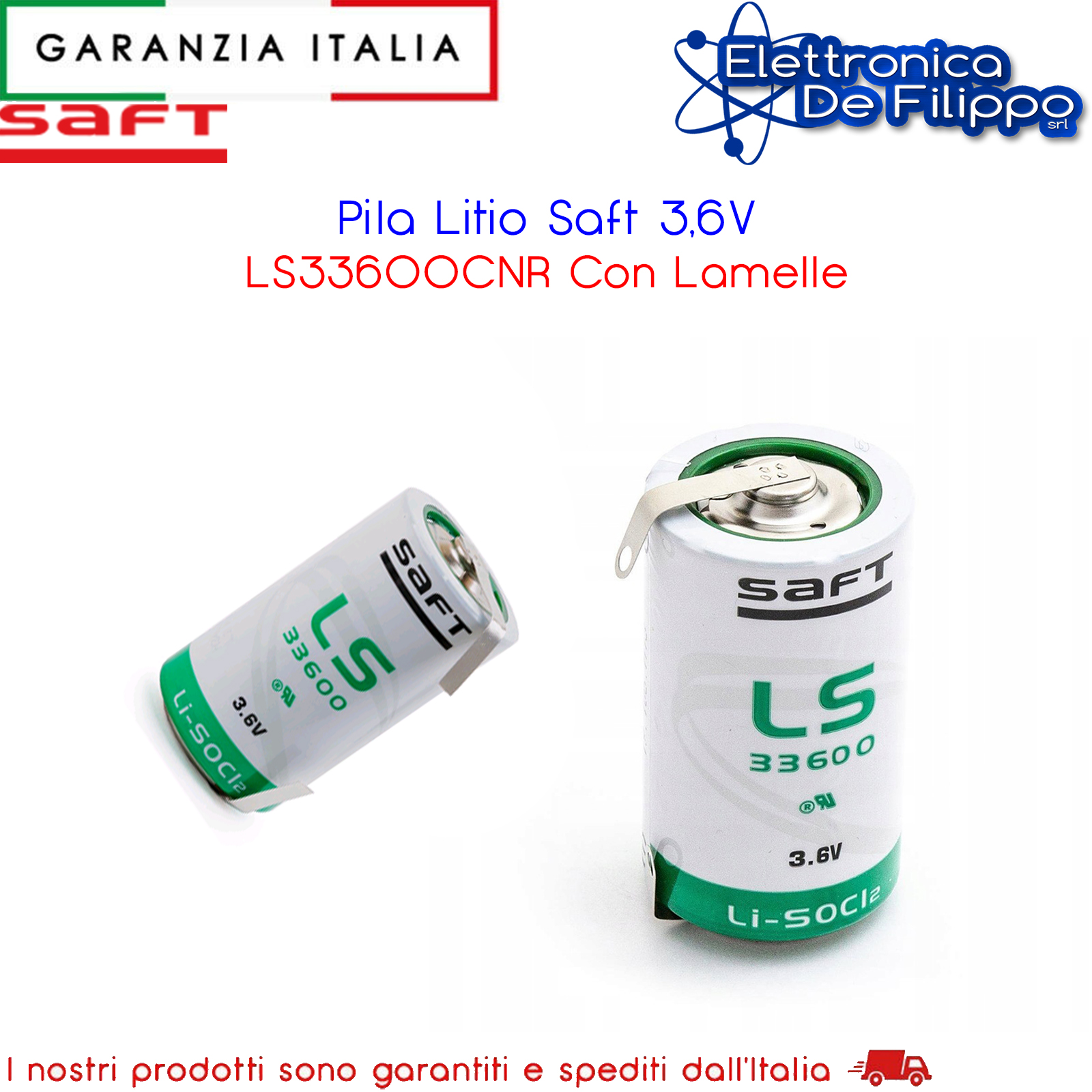Pila al litio SAFT Cloruro di Tionile (LI-SoCl2). Questo tipo di pila al litio non ricaricabile da 3,6Volt, fa parte di una ampia gamma di pile prodotte da SAFT per i più disparati utilizzi. Le principali caratteristiche di questa tipologia di pile sono l'alto voltaggio durante la fase di scarica, la bassa autoscarica (3% anno a 20°C) e il suo funzionamento con temperatura da -60°C a 85°C. La tecnologia BOBINA (serie LS) si basa su un'alta concentrazione di energia che garantisce un prelievo continuo in scarica e/o impulsi di basso amperaggio. Conformi all normativa IEC86-4 / EN50020. Certificato UL MH126009. Ermeticità garantita fino a 110°C.