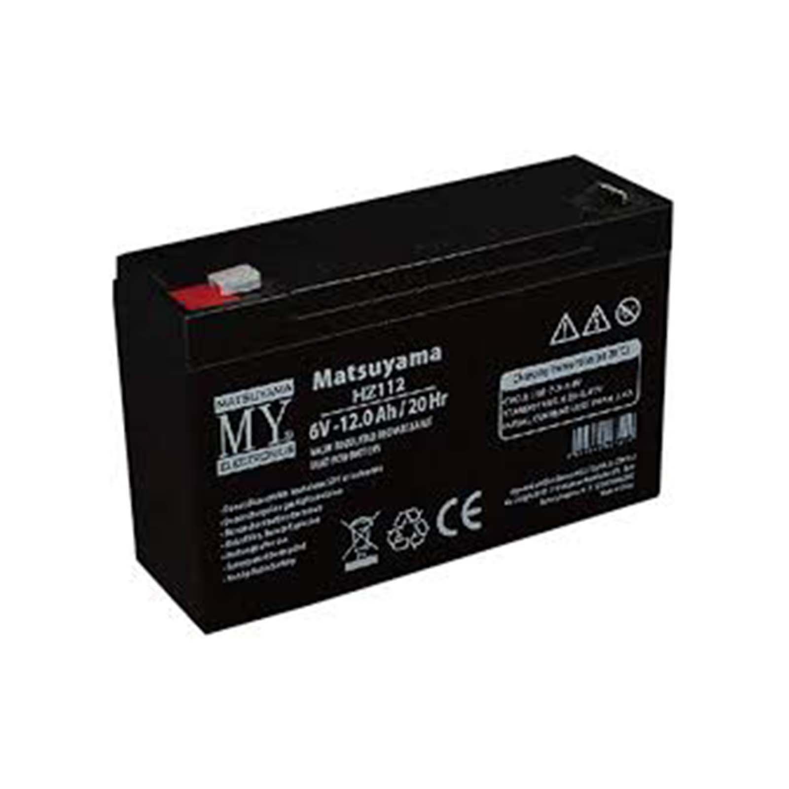 Batteria al Piombo AGM con celle alta qualità, uscita da 6V DC corrente continua con potenza di 12AH Ampere (12000mA).
