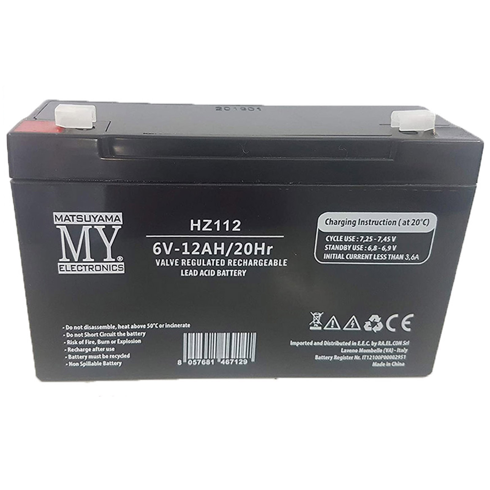 Batteria al Piombo AGM con celle alta qualità, uscita da 6V DC corrente continua con potenza di 12AH Ampere (12000mA).