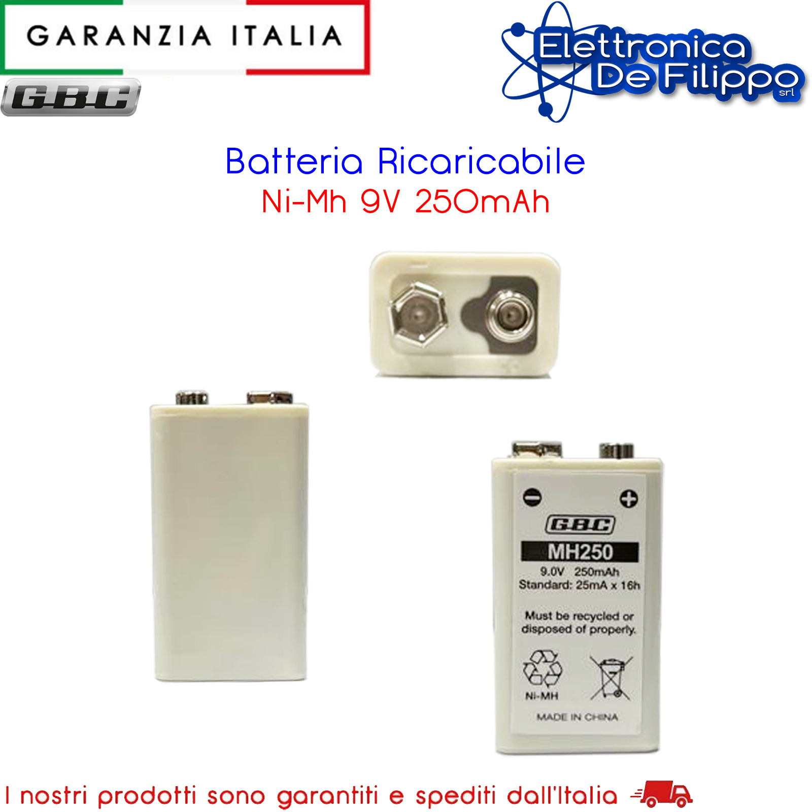 Batteria Ricaricabile Ni-Mh 9V 250mAh