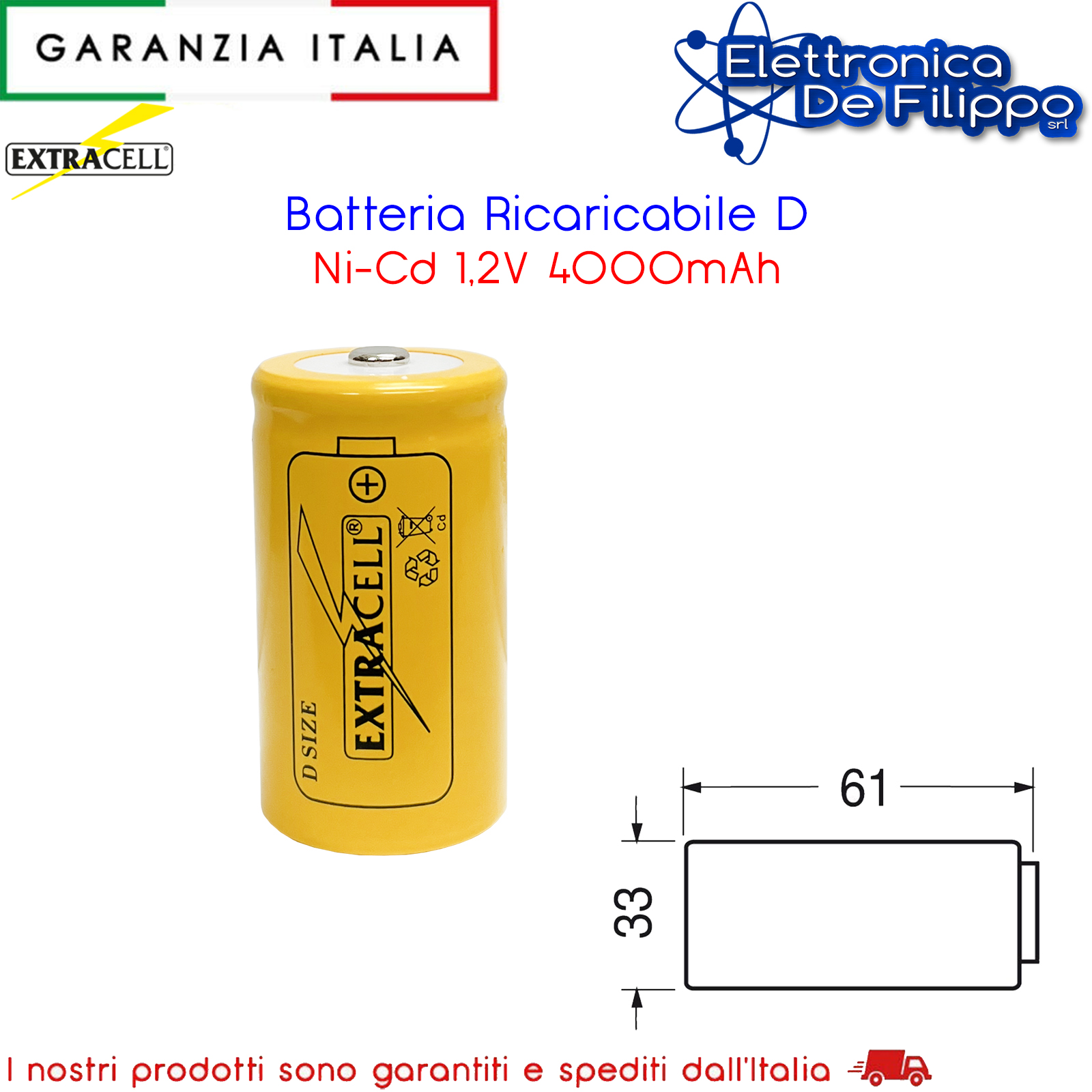 Batteria ricaricabile C Ni-Cd 1,2V 4000mAh per apparecchiature portatili, hobbistica, lampade d'emergenza ed impieghi vari
