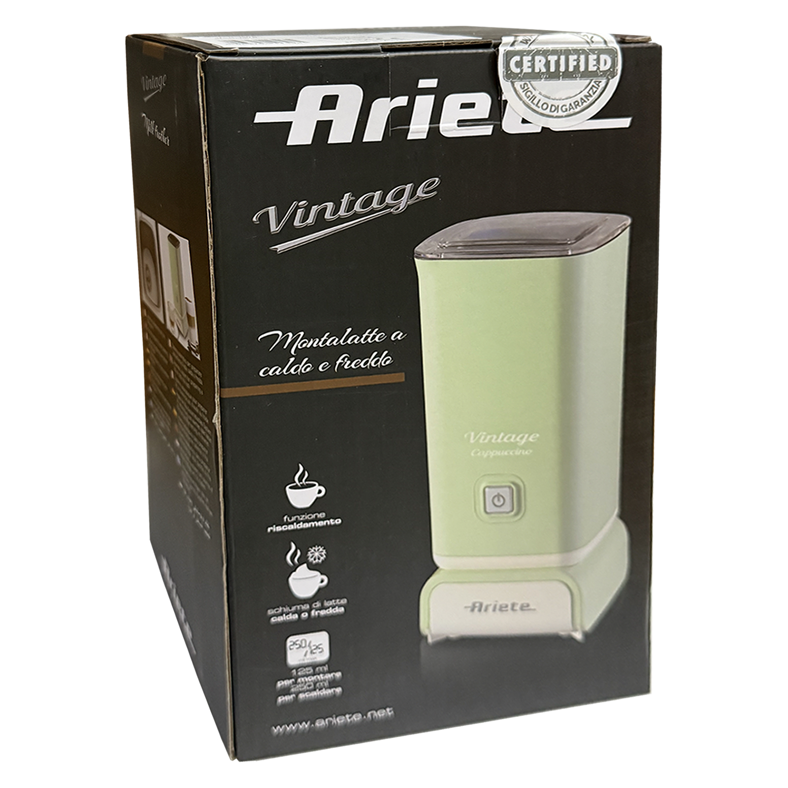 Se la mattina non puoi rinunciare alla cremosità di un cappuccino appena fatto, allora il Cappuccinatore Vintage è quello che fa per te. Sì, perché fare il cappuccino a casa non è mai stato così semplice grazie al montalatte elettrico Ariete, dal design Vintage e colorato, per colazioni a casa come al bar. Con cappuccinatore Vintage avrai in soli 2 minuti una schiuma di latte calda o fredda, utilizzando un unico pulsante. Con montalatte Vintage Avrai inoltre a disposizione due diversi accessori: uno per montare il latte e l’altro per mescolare tutti gli ingredienti che preferisci per creare frullati e smoothie di frutta e verdura: lo schiumalatte ideale per la tua cucina!