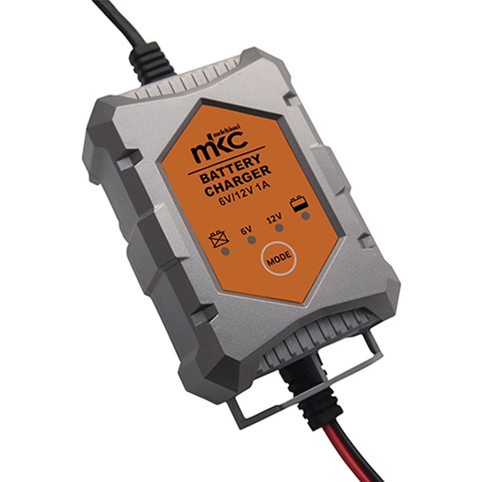 Caricabatterie per batterie al piombo da 6/12V con una capacità di 1A, che funziona a 230V AC. Questo tipo di caricabatterie è comunemente usato per ricaricare batterie di veicoli, motociclette, imbarcazioni e altri dispositivi che utilizzano batterie al piombo.