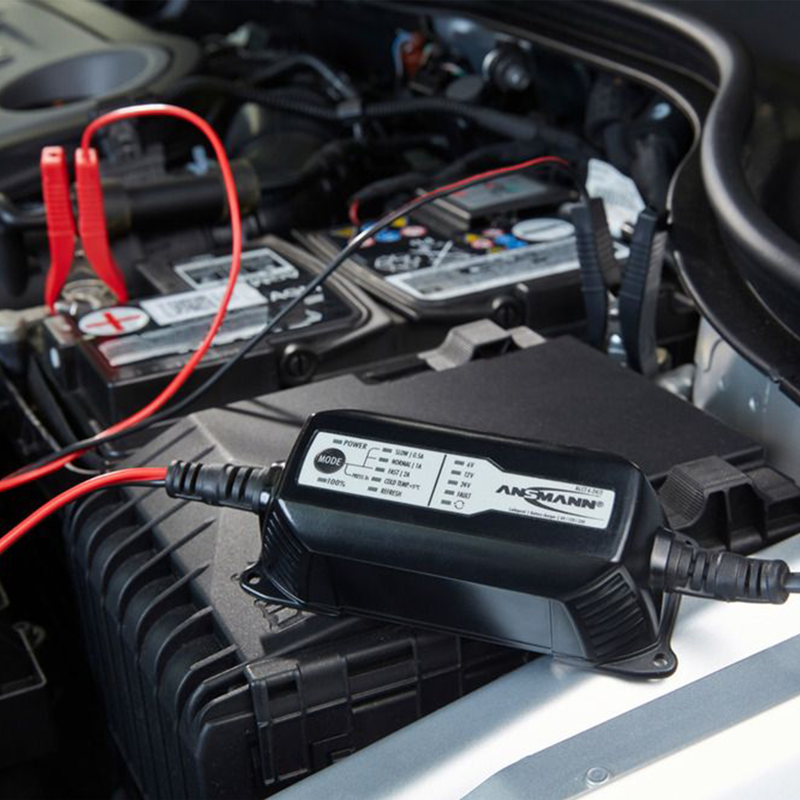 Grazie a numerose caratteristiche, l'ALCT 6-24/2 garantisce una ricarica sicura e delicata e garantisce prestazioni ottimali e una lunga durata delle batterie al piombo. Dopo aver collegato con successo i terminali dei poli, il dispositivo rileva automaticamente la tensione della batteria al piombo collegata e la indica tramite il LED corrispondente sul display. A seconda della tensione, è possibile selezionare una corrente di carica tramite il pulsante "MODE", il che significa che le batterie dell'auto possono essere caricate molto rapidamente, ma anche le piccole batterie della moto possono essere caricate molto delicatamente.