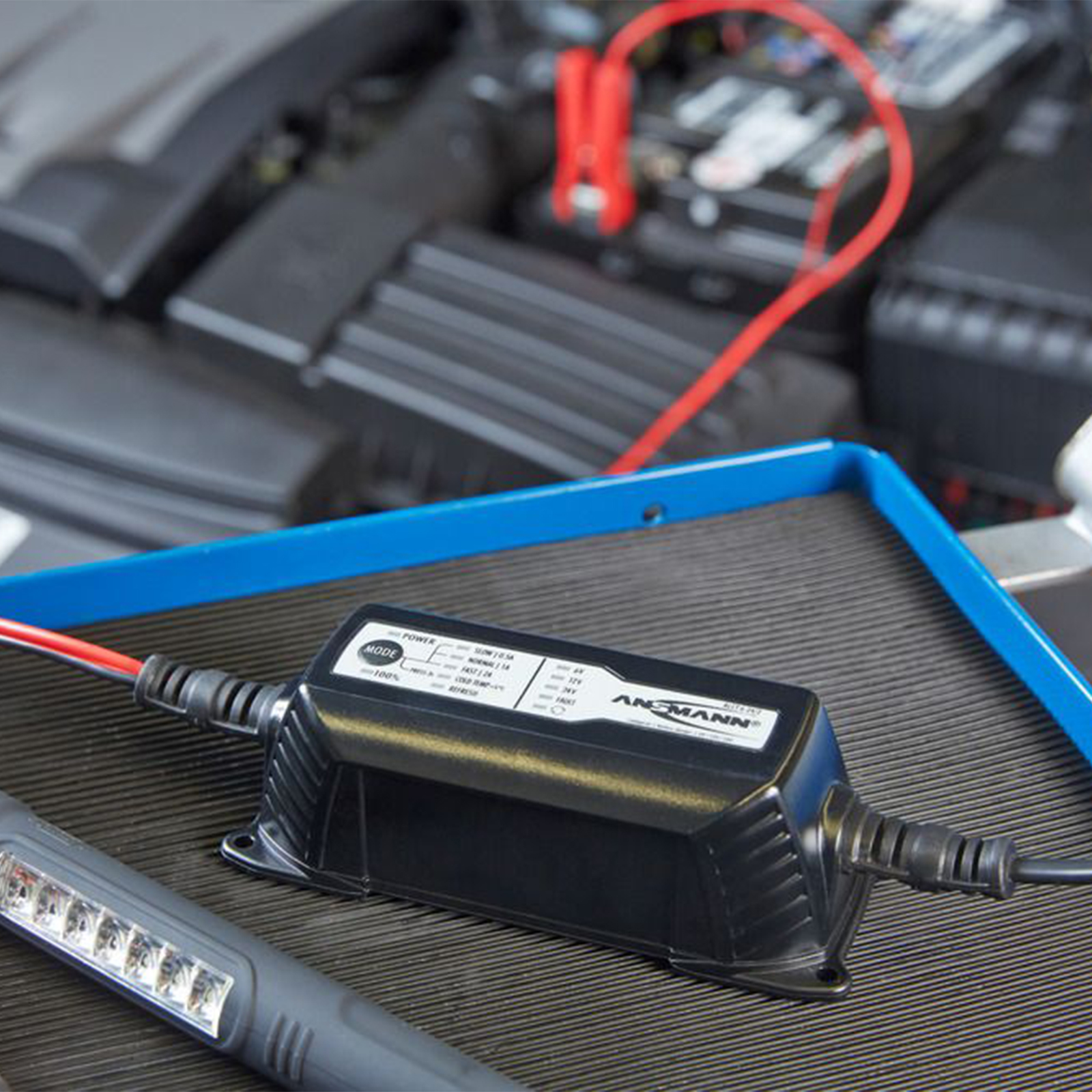 Grazie a numerose caratteristiche, l'ALCT 6-24/2 garantisce una ricarica sicura e delicata e garantisce prestazioni ottimali e una lunga durata delle batterie al piombo. Dopo aver collegato con successo i terminali dei poli, il dispositivo rileva automaticamente la tensione della batteria al piombo collegata e la indica tramite il LED corrispondente sul display. A seconda della tensione, è possibile selezionare una corrente di carica tramite il pulsante "MODE", il che significa che le batterie dell'auto possono essere caricate molto rapidamente, ma anche le piccole batterie della moto possono essere caricate molto delicatamente.