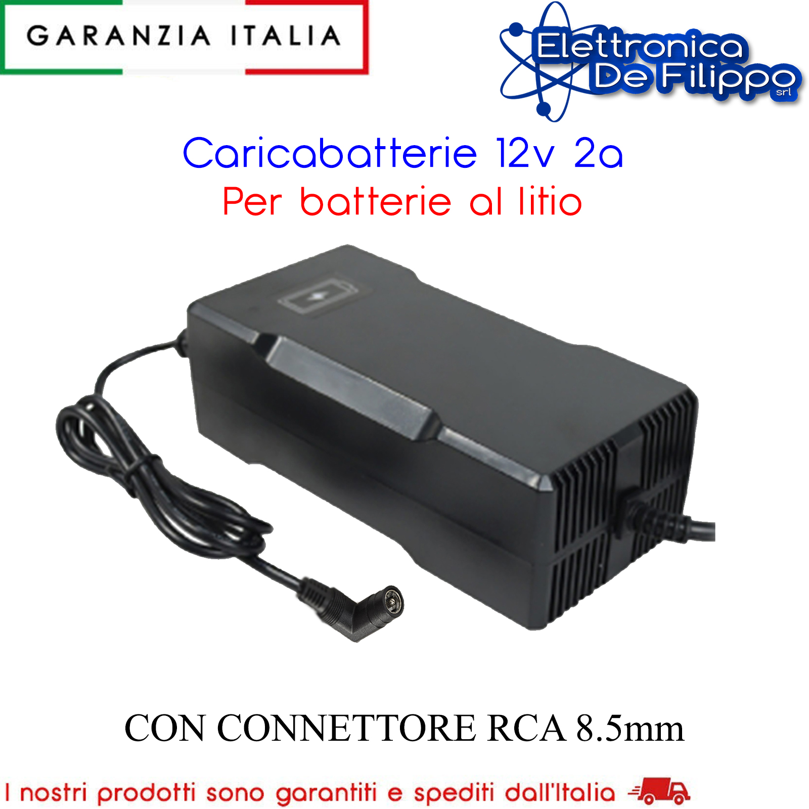Carica batterie switching per batterie agli ioni di litio (Li-Ion), utilizzate principalmente nelle biciclette con pedalata assistita (e-bike). CONNETTORE RCA 8.5mm. Controllo ad alta precisione per la corretta gestione della ricarica. Garantisce ricarica al 100%, senza sovraccarichi. Protetto da sovratensioni e corto circuiti. LED bicolore di indicazione di stato e di ricarica in corso. Alta efficienza per una maggiore tutela dell'ambiente. Piccolo e compatto, sicuro e affidabile, di lunga durata.