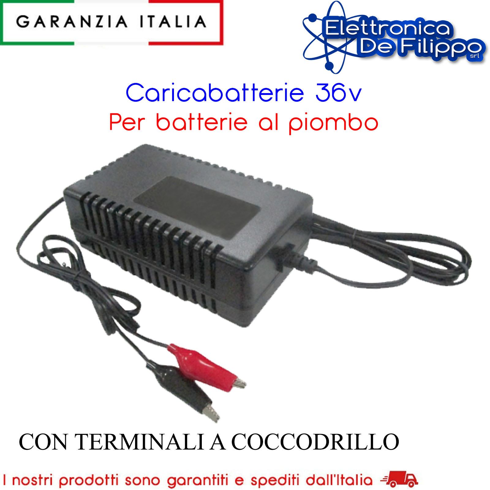 Caricabatteria Switching per batterie al piombo 36V da 9Ah a 18Ah. Corrente di carica 2A. Idoneo per la ricarica di tutte le batterie al piombo sia per trazione, sia per uso stazionario anche in tecnologia AGM e GEL. Terminali a coccodrillo per collegamento alla batteria. Dotato di LED di segnalazione di fine carica. Protetto da sovratensioni e corto circuiti e controllo della gestione di ricarica.
