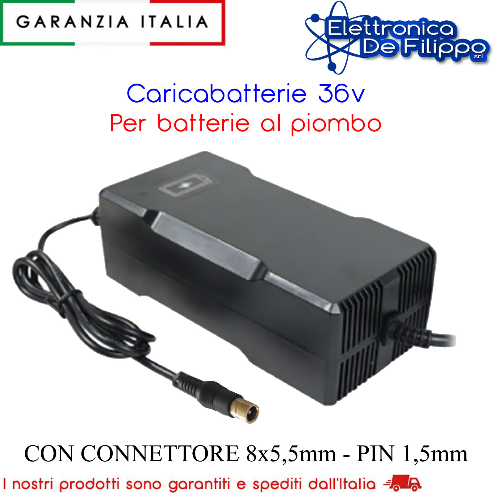 Caricabatteria Switching per batterie al piombo 36V da 9Ah a 18Ah. Corrente di carica 2A. Idoneo per la ricarica di tutte le batterie al piombo sia per trazione, sia per uso stazionario anche in tecnologia AGM e GEL. Terminale CON CONNETTORE 8x5,5mm per collegamento alla batteria. Dotato di LED di segnalazione di fine carica. Protetto da sovratensioni e corto circuiti e controllo della gestione di ricarica.