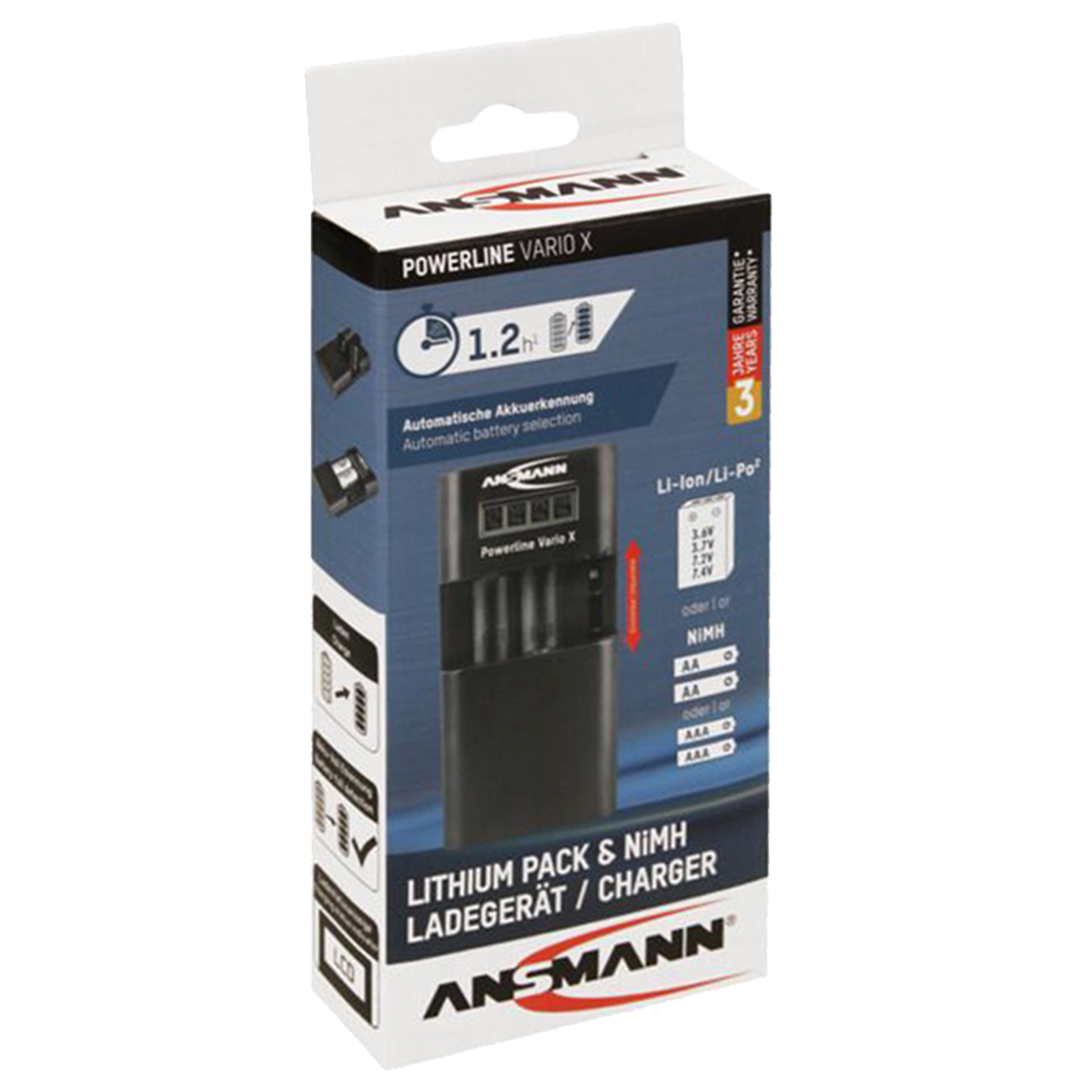 Il design ingegnoso del Powerline Vario X consente di caricare quasi tutte le batterie agli ioni di litio e le batterie Li-Po. Indipendentemente dal fatto che si tratti di una batteria per una fotocamera digitale o una videocamera, i contatti mobili possono essere variati di conseguenza e rendono il Powerline Vario un tuttofare.