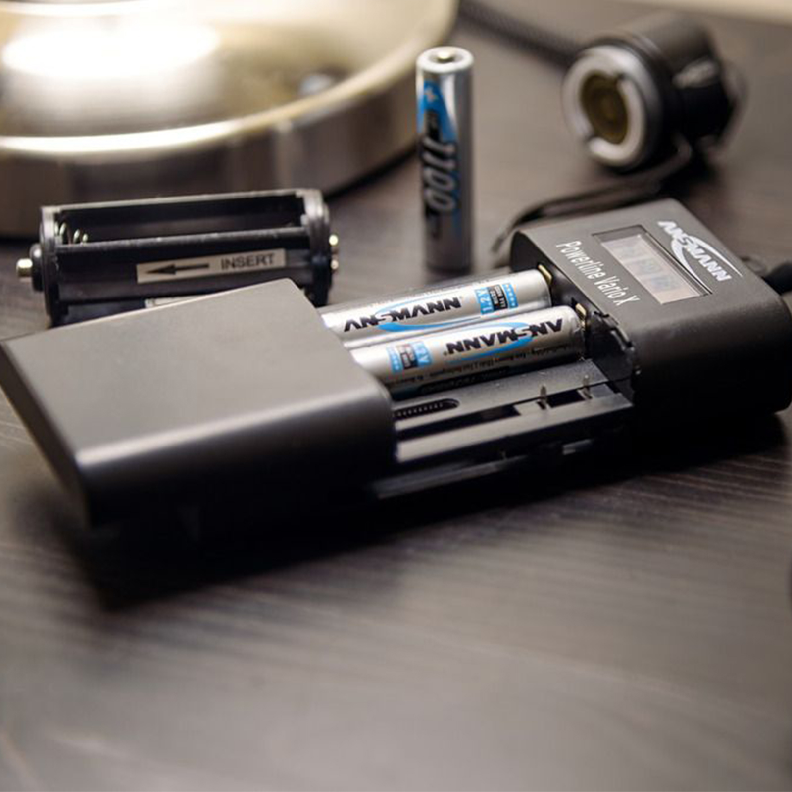 In alternativa è possibile caricare in coppia le classiche batterie NiMH a celle rotonde nelle dimensioni Micro AAA e Mignon AA. Questo è un enorme vantaggio in viaggio e in viaggio, poiché per tutte le batterie è necessario un solo dispositivo.