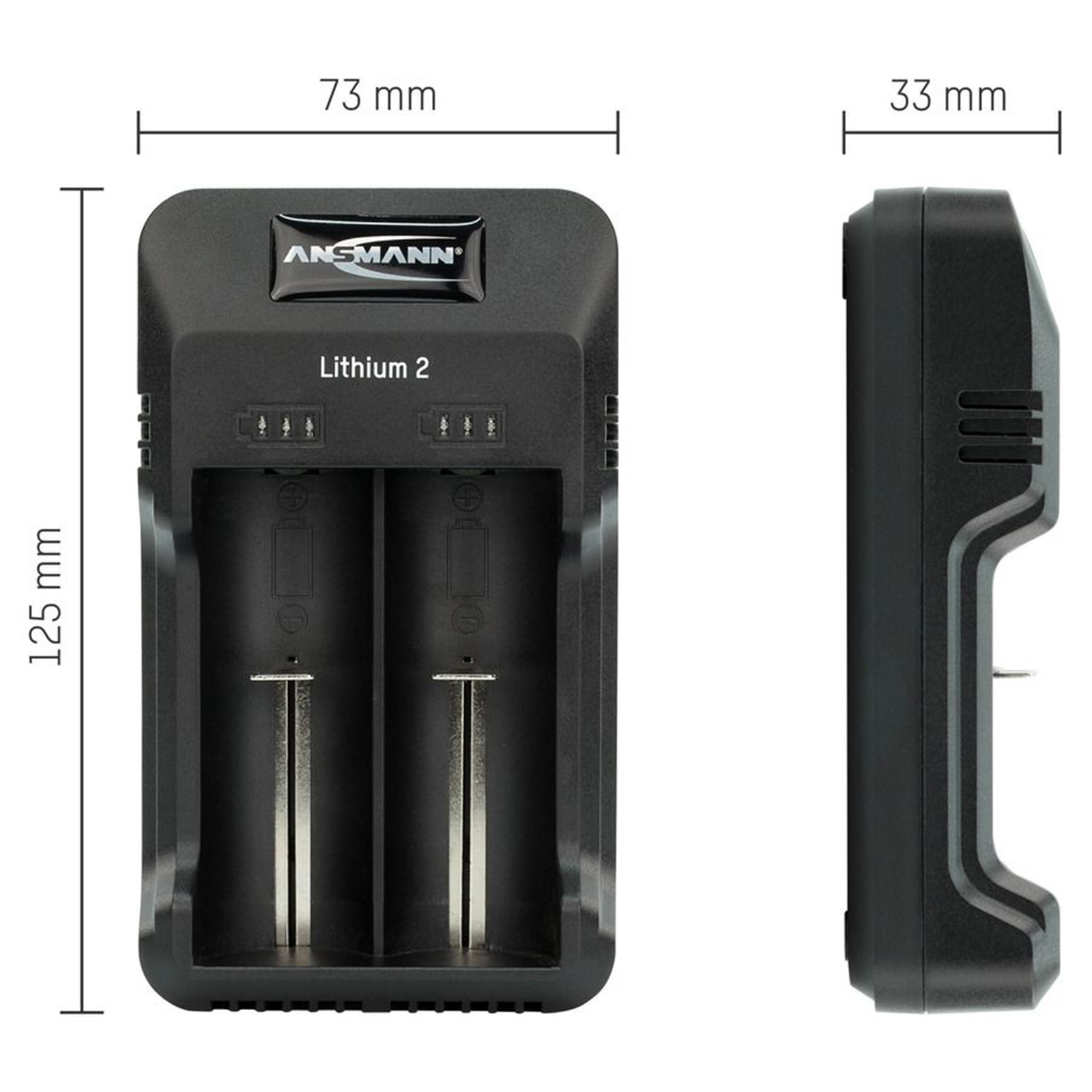 Sono disponibili numerose dimensioni diverse di batterie ricaricabili, in particolare nel segmento agli ioni di litio. Con il caricabatterie Lithium 2 di ANSMANN avete scelto un tuttofare universale con il miglior rapporto qualità-prezzo. Con i due slot di ricarica è possibile caricare 1-2 batterie ricaricabili agli ioni di litio nelle dimensioni 26650, 22650, 18650, 18500, 17670, 16340, 14500 ecc. o 1-2 batterie ricaricabili NiMH AA / AAA, indipendentemente l'una dall'altra. Il dispositivo rileva la batteria inserita in modo completamente automatico e senza noiose regolazioni. Il processo di carica inizia immediatamente, una volta inserite le celle con la polarità corretta.