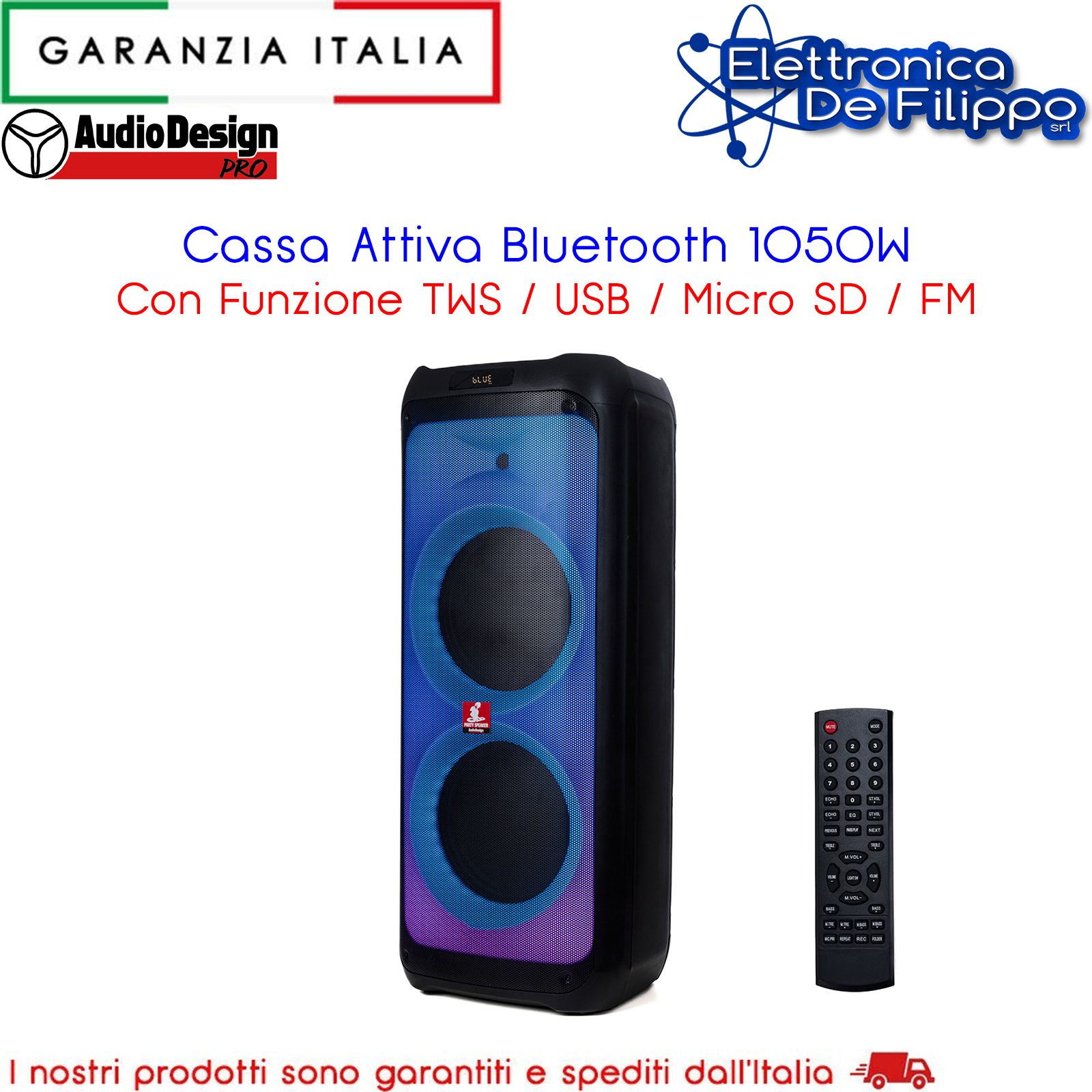 Vivi la potenza del suono con questa cassa Bluetooth professionale da 1050W, pensata per trasformare ogni evento in un’esperienza audio completa e scenografica. Robusta, potente e versatile, è la scelta ideale per DJ set, feste all’aperto, eventi live e karaoke.