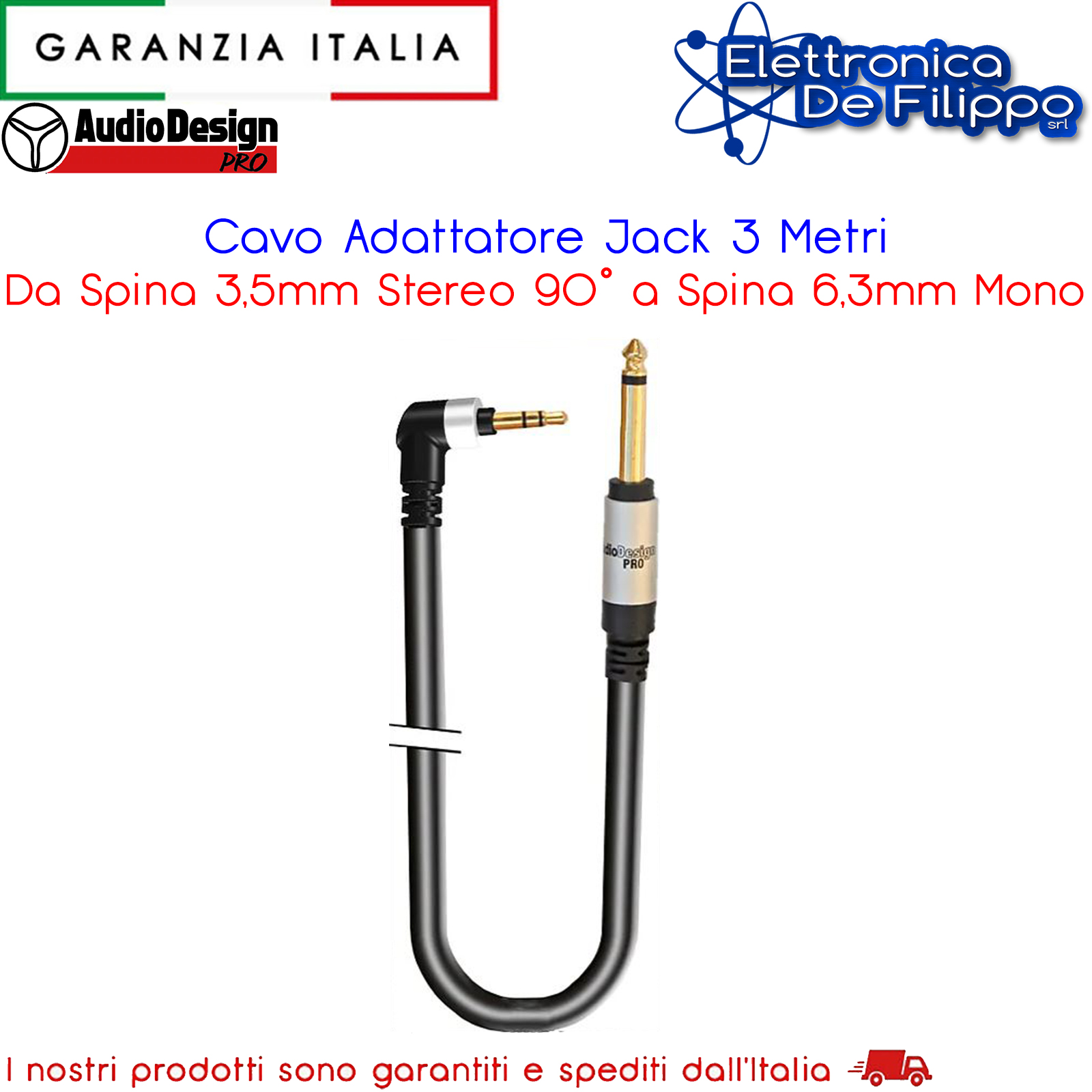 Cavo Adattatore Jack 3 Metri Da Spina 3,5mm Stereo 90 Gradi a Spina 6,3mm Mono