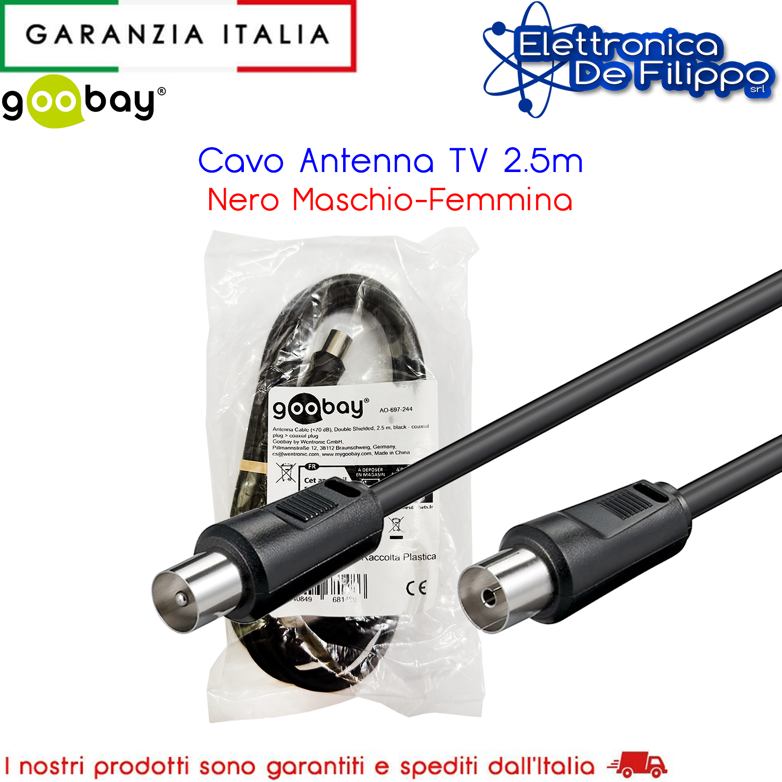 Un cavetto antenna da spina coassiale a presa coassiale è un cavo con un connettore maschio coassiale su un'estremità e un connettore femmina coassiale sull'altra. Questi connettori sono progettati per trasmettere segnali radio o televisivi da un dispositivo come un televisore o una radio a un'antenna o a un'altra sorgente di segnale. Questo tipo di cavo viene utilizzato per garantire una connessione affidabile tra il tuo dispositivo e l'antenna, consentendo la ricezione di segnali chiari e di qualità.