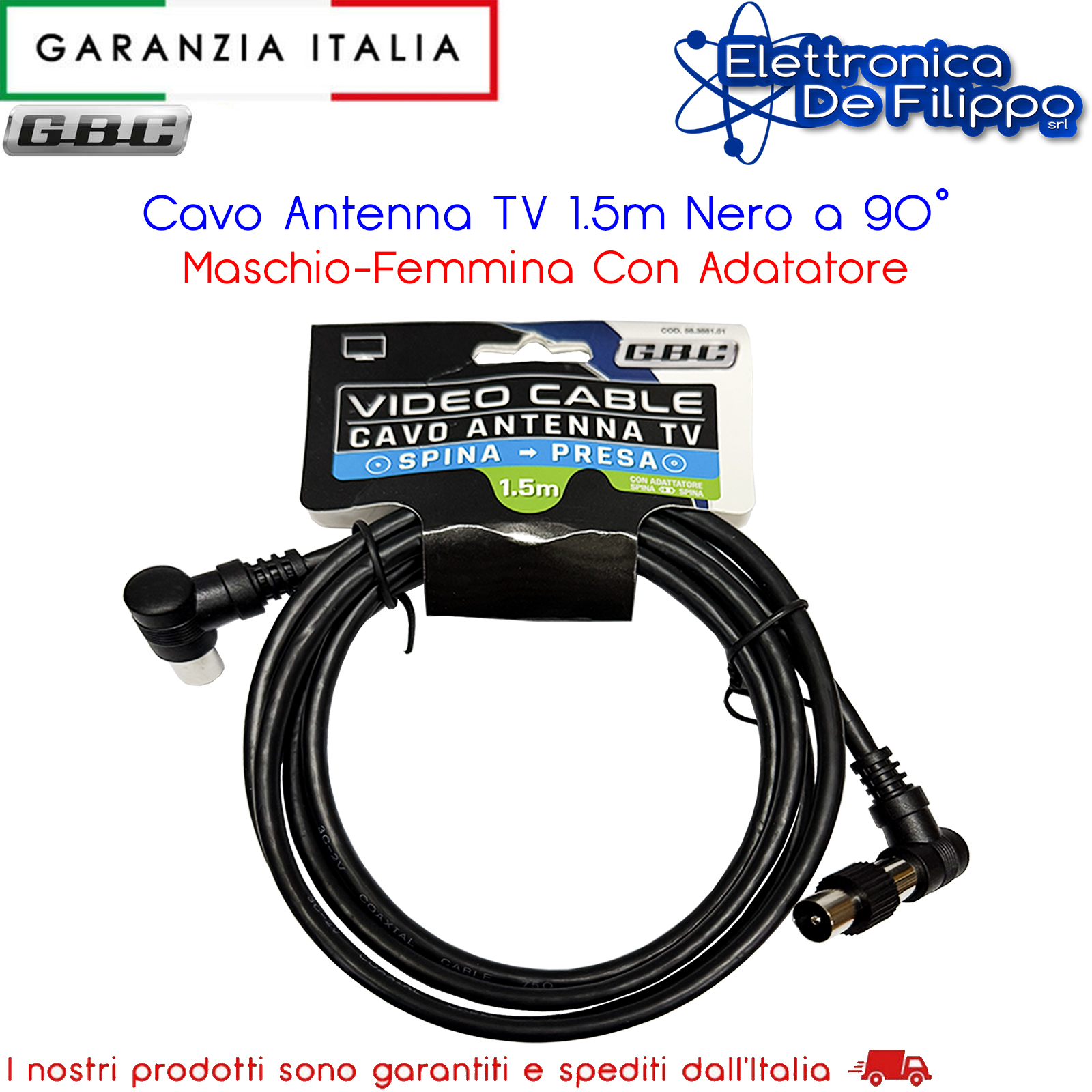 Cavo Antenna TV da Spina 9,5mm a Presa 9,5mm per collegamento dei televisori all'antenna TV. L'adattatore Spina/ Spina incluso, permette un utilizzo universale.