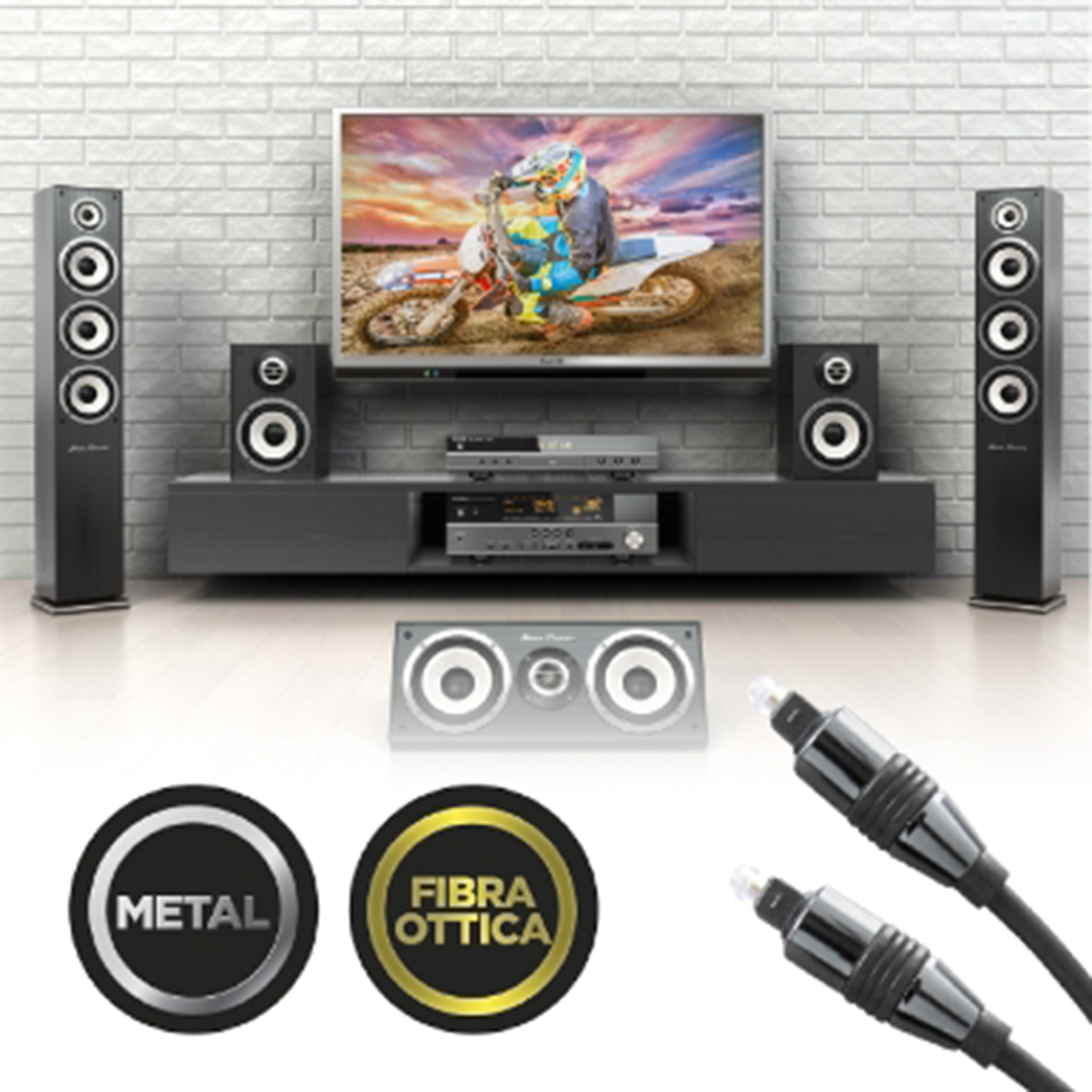 Cavo audio digitale in fibra ottica con connettori Toslink T (SPDIF) di qualità PREMIUM 1m. Ideale per la connessione dei sistemi Home Theatre alle TV di ultima generazione, garantisce un qualità audio di altissimo livello riducendo a zero la latenza delle trasmissioni; ideale per collegamenti professionali; i connettori metallici ne garantiscono la resistenza all'uso.