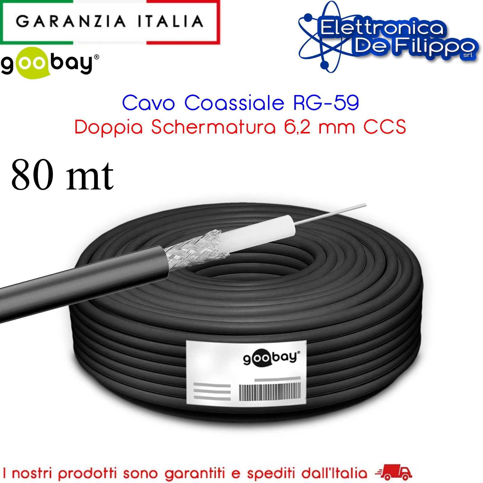 Cavo Coassiale RG-59 Doppia Schermatura 6,2 mm CCS 80 Metri