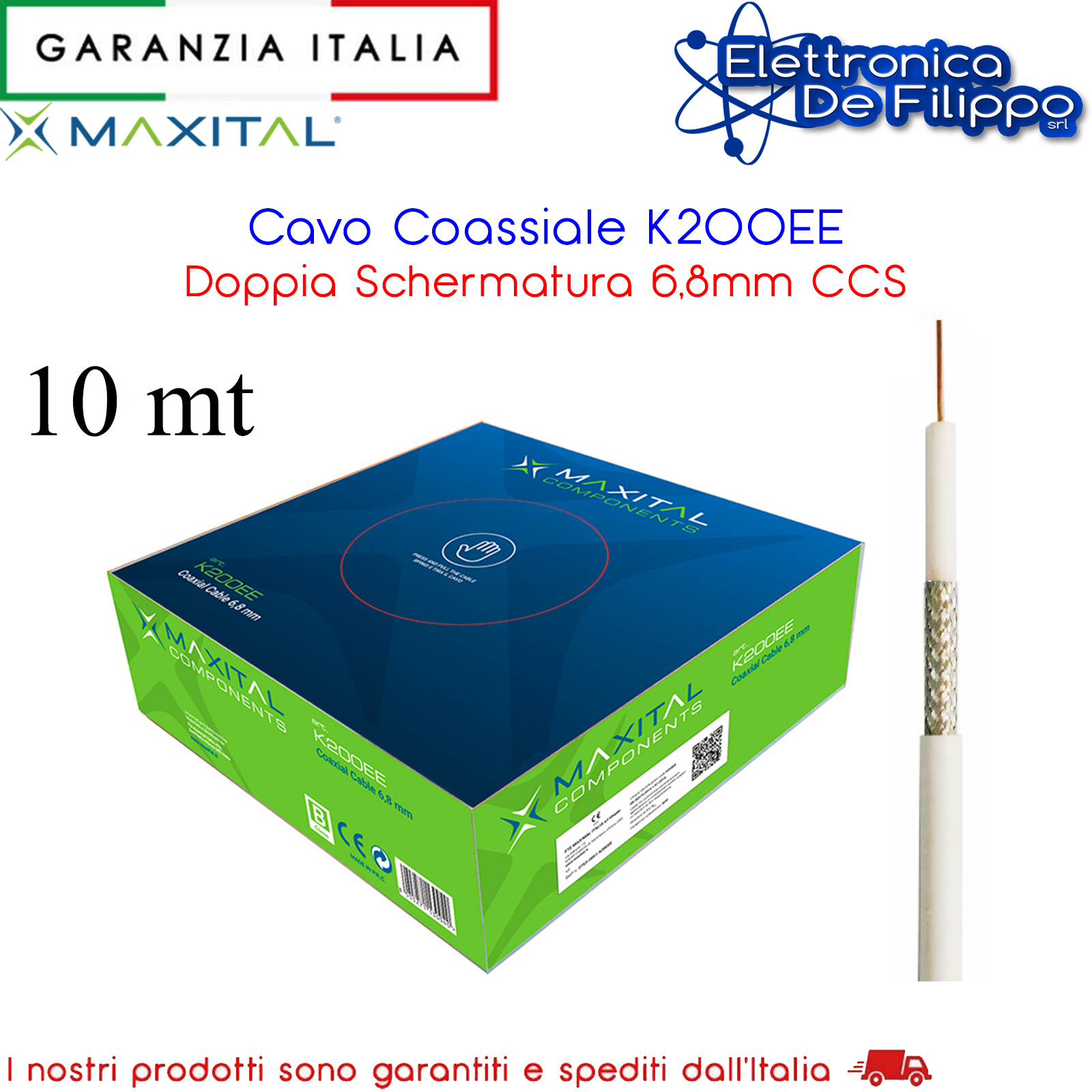 Cavo Coassiale K200EE Doppia Schermatura 6,8mm CCS 10 Metri