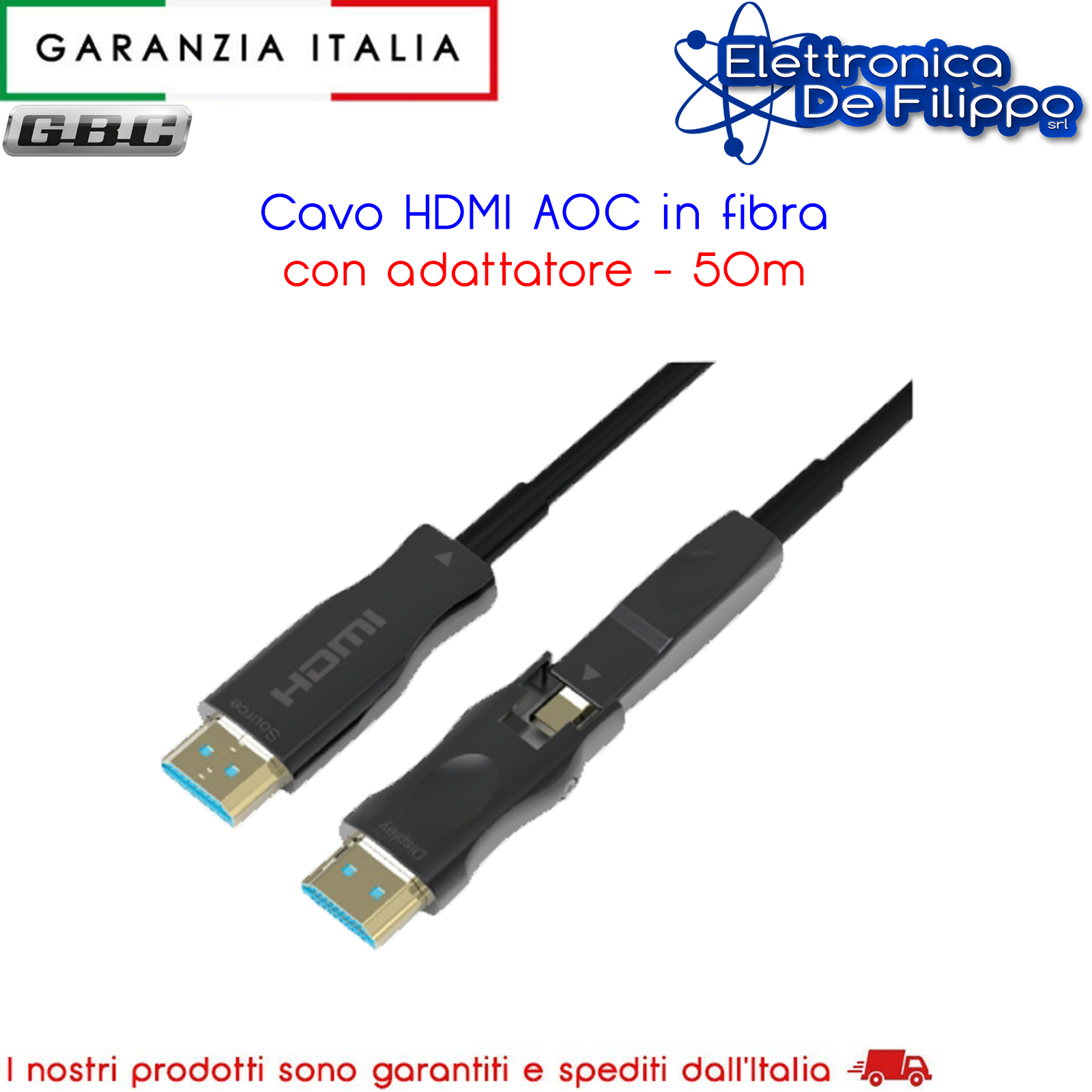 Cavi HDMI attivi direzionali AOC (Active Optical Cable) in fibra sono una soluzione semplice ed efficace per la trasmissione di dati multimediali digitali ad altissima definizione a lunga distanza, supporta risoluzioni fino a 4K@60Hz, banda passante 18Gbps; sono compatibili con CEC e ARC, supportano HDR. L'uso della fibra ottica consente di trasferire il segnale senza dispersioni o interferenze, ideale per il passaggio all'interno di canaline e dietro mobili, grazie al micro connettore HDMI è perfetto per questo tipo di applicazioni. Ovviamente consigliato per applicazioni professionali, il cavo AOC è adattissimo anche in ambito domestico