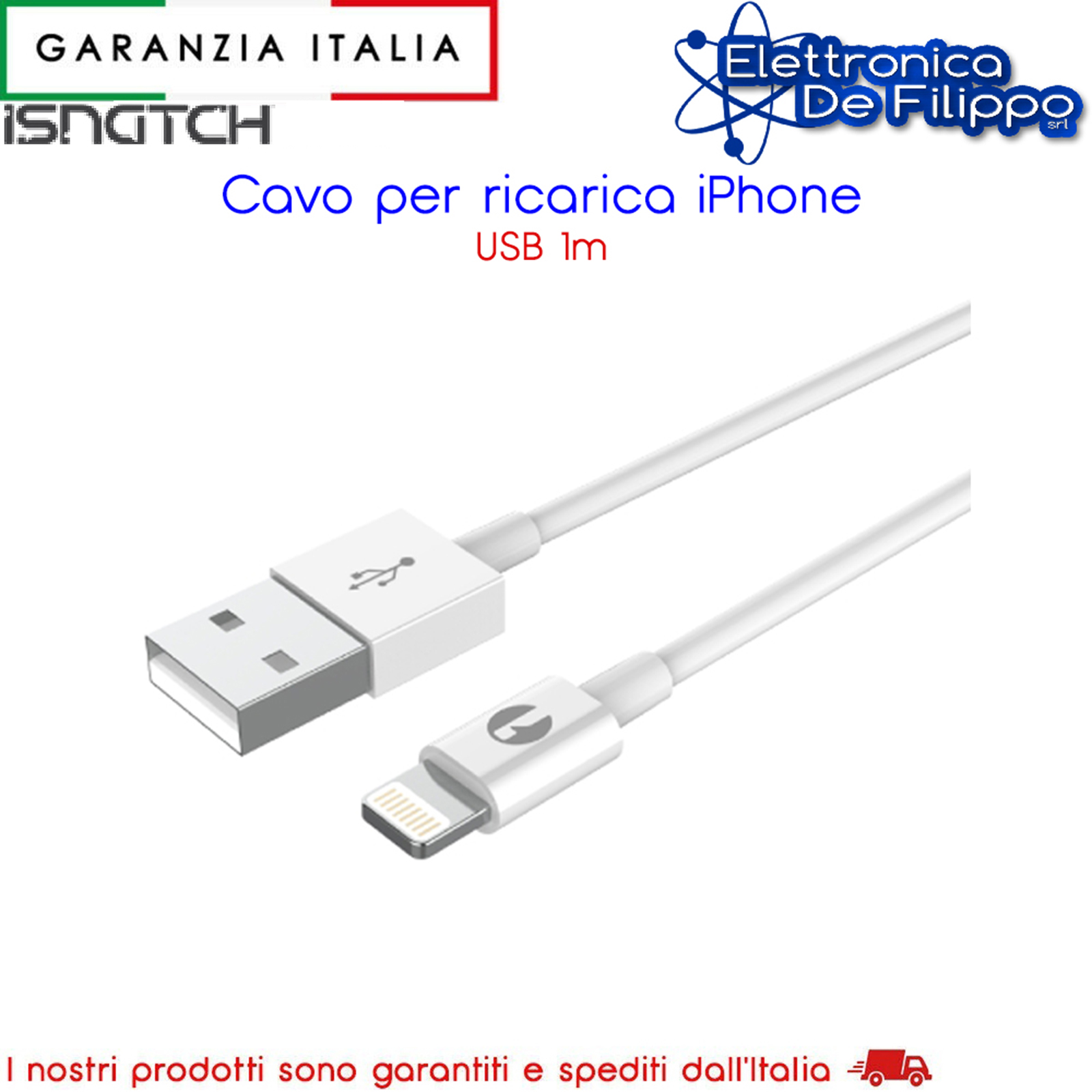 Cavo da connettore "Lightning" a USB 2.0 permette la ricarica di dispositvi Apple. Colore bianco, lunghezza 1 metro