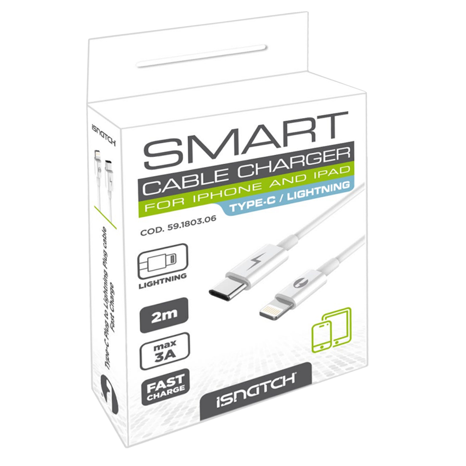 Cavo da connettore "Lightning" a USB Type-C per la ricarica di dispositivi Apple. Grazie al supporto della corrente massima fino a 3A permette ricariche veloci e sicure se collegato a dispositivi compatibili. Colore bianco, lunghezza 2 metri