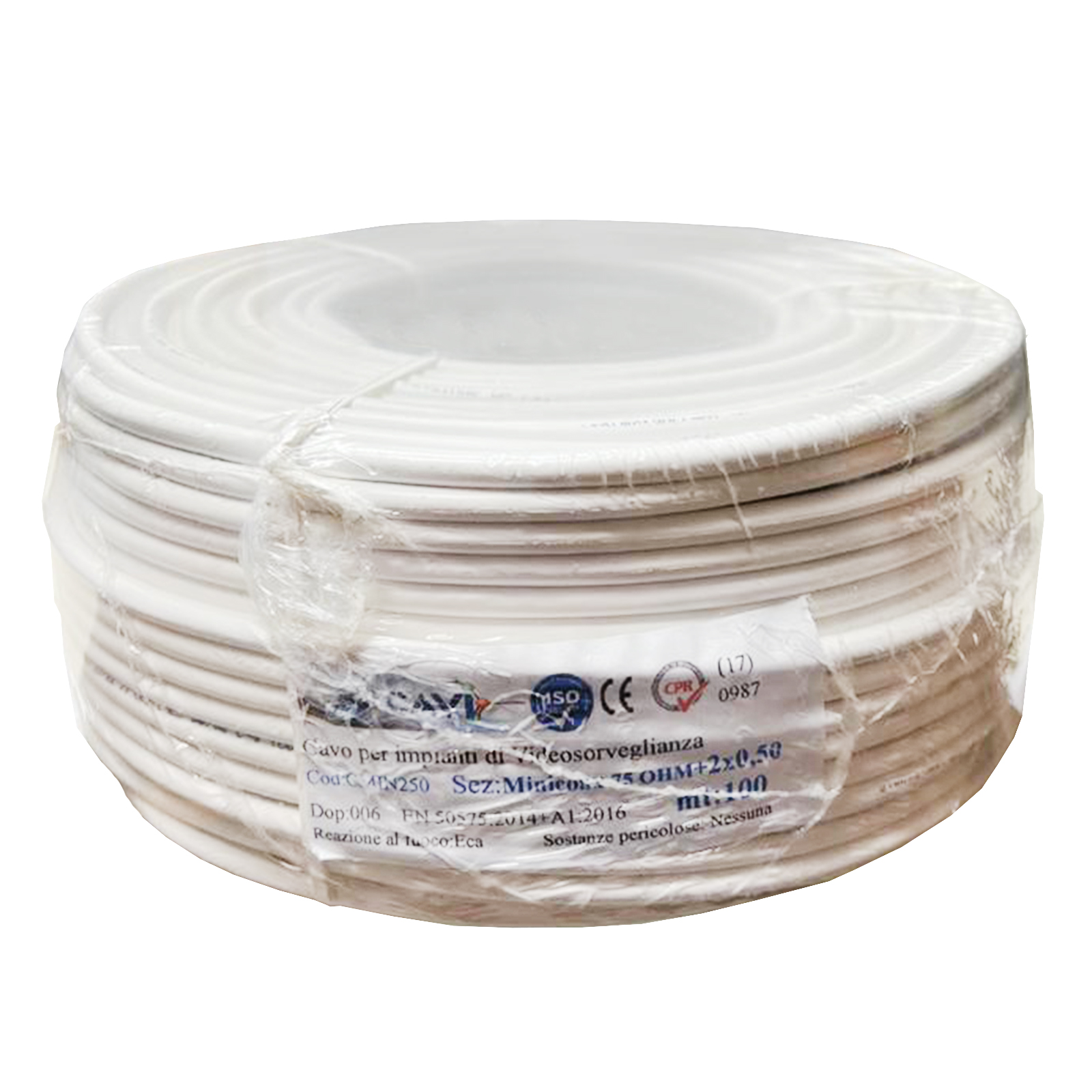 Cavo Micro Coassiale Composito 2x0,50mm PVC 70 Metri